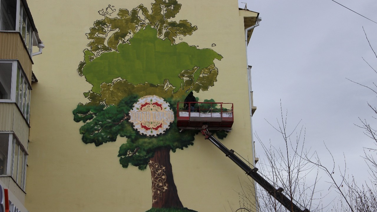 В Уфе на фасаде жилого дома появилось новое граффити «Золото тюрков»
