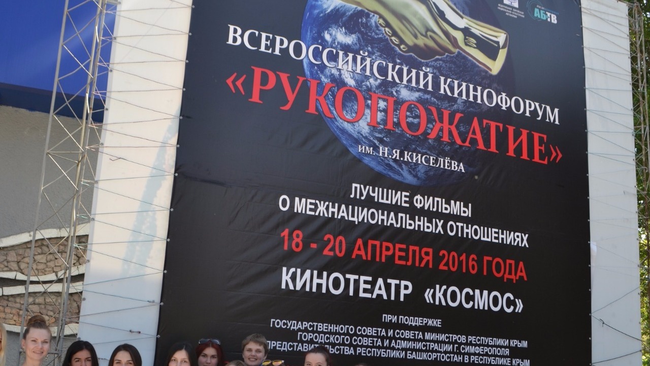 УФА, 23 апр 2016. /ИА «Башинформ», Гульчачак Ханнанова/. С 18 по 20 апреля в Симферополе, в кинотеатре «Космос», прошел очередной этап Всероссийского кинофорума «Рукопожатие» – масштабного некоммерческого проекта, посвященного Году российского кино. В этом году кинофорум проходит во второй раз и с более широким зрительским охватом – сразу в нескольких городах России. Он успешно стартовал 15 февраля в Башкортостане. В марте и апреле кинофорум продолжится в Ярославле, Казани и Ростове-на-Дону. Во всех этих городах в течение трех дней бесплатно демонстрировались для всех желающих 15 художественных и документальных кинолент российских авторов, посвященных проблемам межнациональных отношений в обществе.