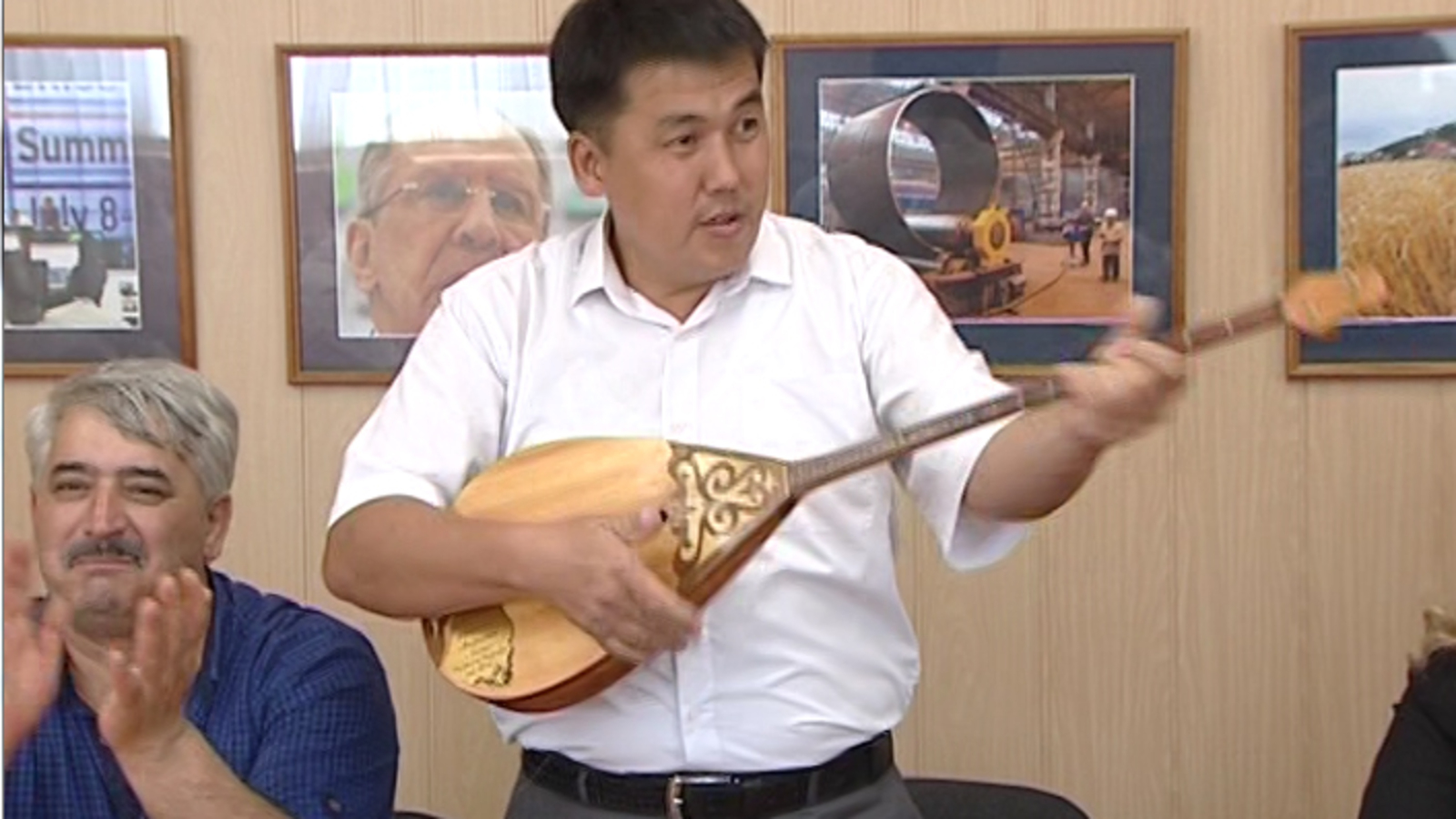 «Это не простая домбра, она играет. Инструмент стоит восемь тысяч рублей», - сообщил Азамат Мукатов и тут же продемонстрировал ее музыкальные возможности. По его словам, приз имени Абая Амирханова передал его родной брат.
