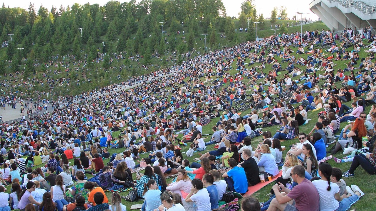 УФА, 26 май 2016. /ИА «Башинформ», Лейла Аралбаева/. Симфоническая ночь-2016 собрала рекордное для Уфы количество зрителей. По оценке Министерства культуры республики, в этом году их оказалось около 22 тысяч. Склоны Уфимского амфитеатра были густо усыпаны любителями ставшего традиционным концерта под открытым небом. Около 700 сидячих мест были заняты непосредственно перед сценой, но большинство уфимцев вместе с семьями и друзьями расположилось на траве. Посетил концерт и Глава Республики Башкортостан Рустэм Хамитов.
