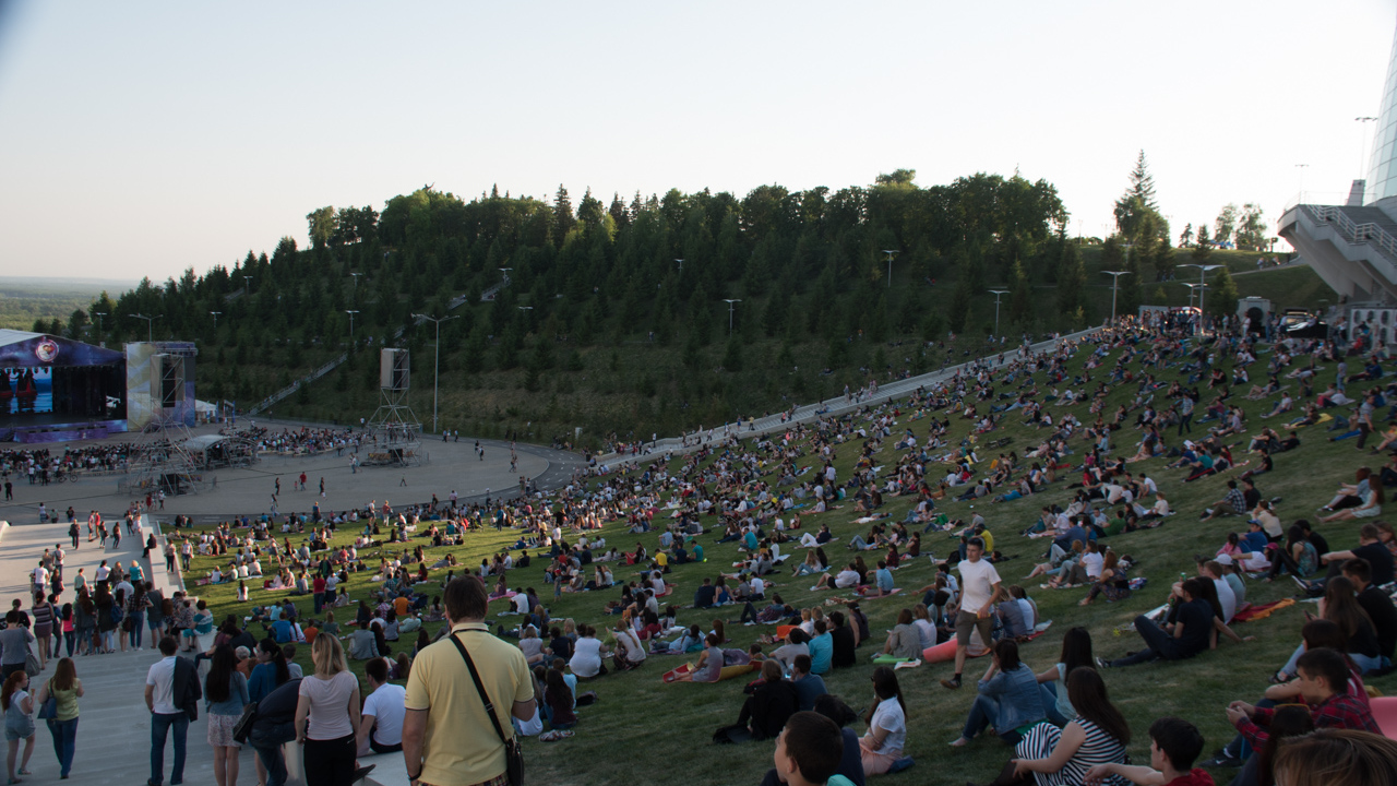 УФА, 26 май 2016. /ИА «Башинформ», Лейла Аралбаева/. В Уфе завершился второй день Международного фестиваля искусств «Сердце Евразии», посвященный Году российского кино в России и Башкортостане. Уфимский амфитеатр вновь собрал тысячи зрителей, на этот раз на Ночь кино.