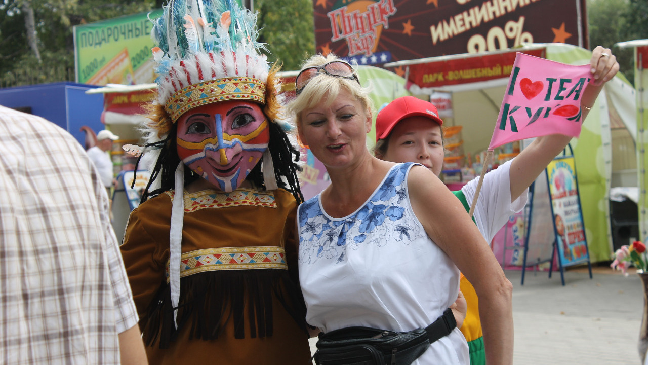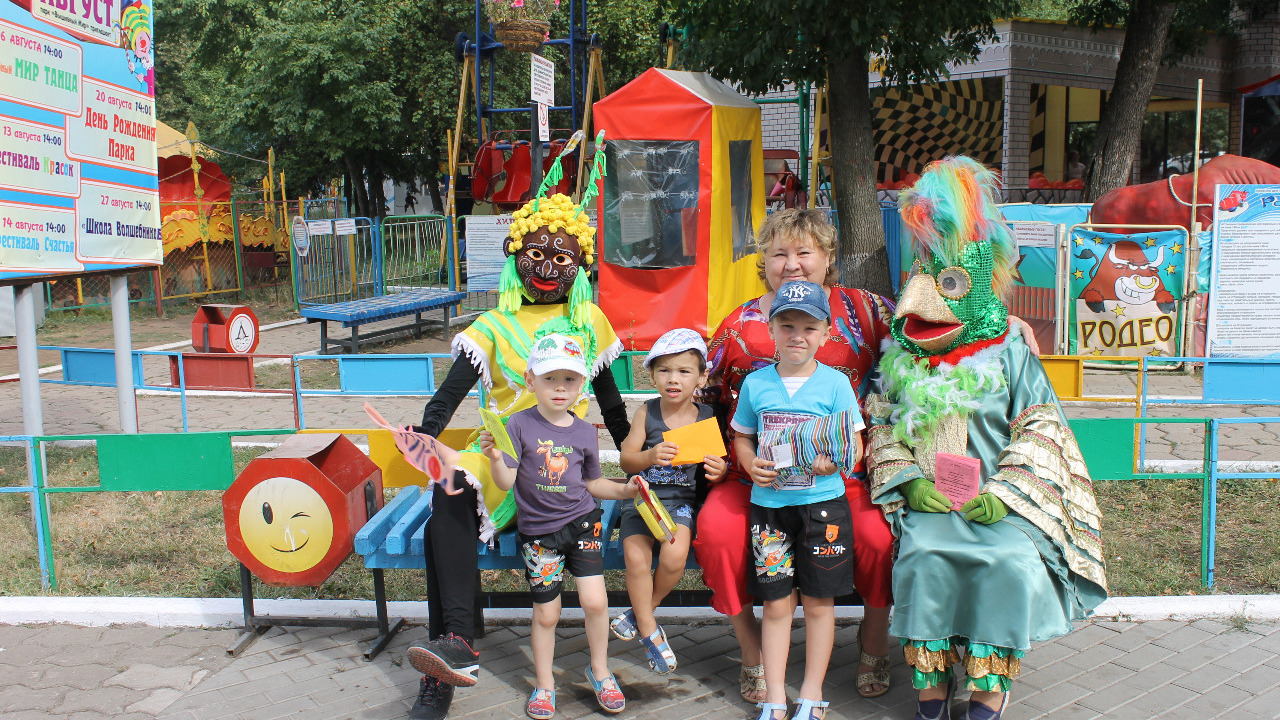 Яркие ростовые куклы, сказочные персонажи вдруг появились в разных концах парка. Коза, Бармалей, Баба-Яга, Индеец и другие герои зазывали людей к главному входу, обещая показать что-то интересное. Окружив кукол с разных сторон, ребята, да и взрослые, стали с ними фотографироваться. Выстроившись в ряд, куклы станцевали с детьми веселый импровизированный танец. Дети повторяли за актерами, выполняли несложные движения, радовались и смеялись.