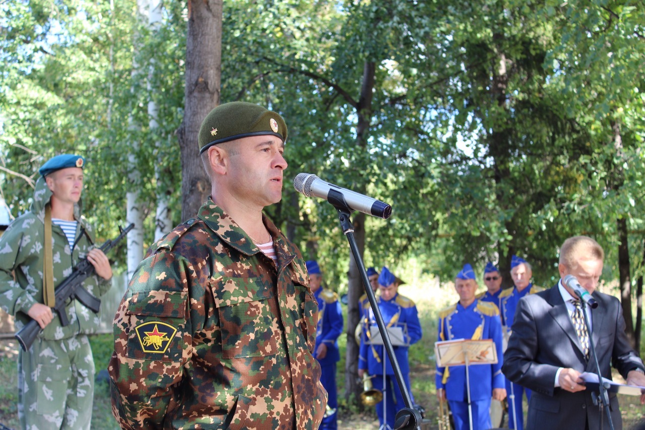 От лица ветеранов воинов-десантников и всех собравшихся поздравил председатель актива, руководитель военно-патриотического клуба «Купол» Андрей Дитрих. С приветственным словом обратился председатель актива воинов-пограничников Давлеканово Марис Гаитов. Член правления Давлекановского районного отделения «Боевое братство», участник первой чеченской кампании Александр Желтов вручил почётные грамоты от правления «Боевое братство» всем, кто принял активное участие в возведении мемориального комплекса. Завершилось открытие праздничным концертом.