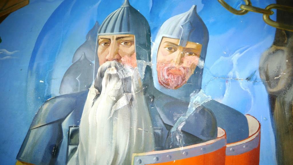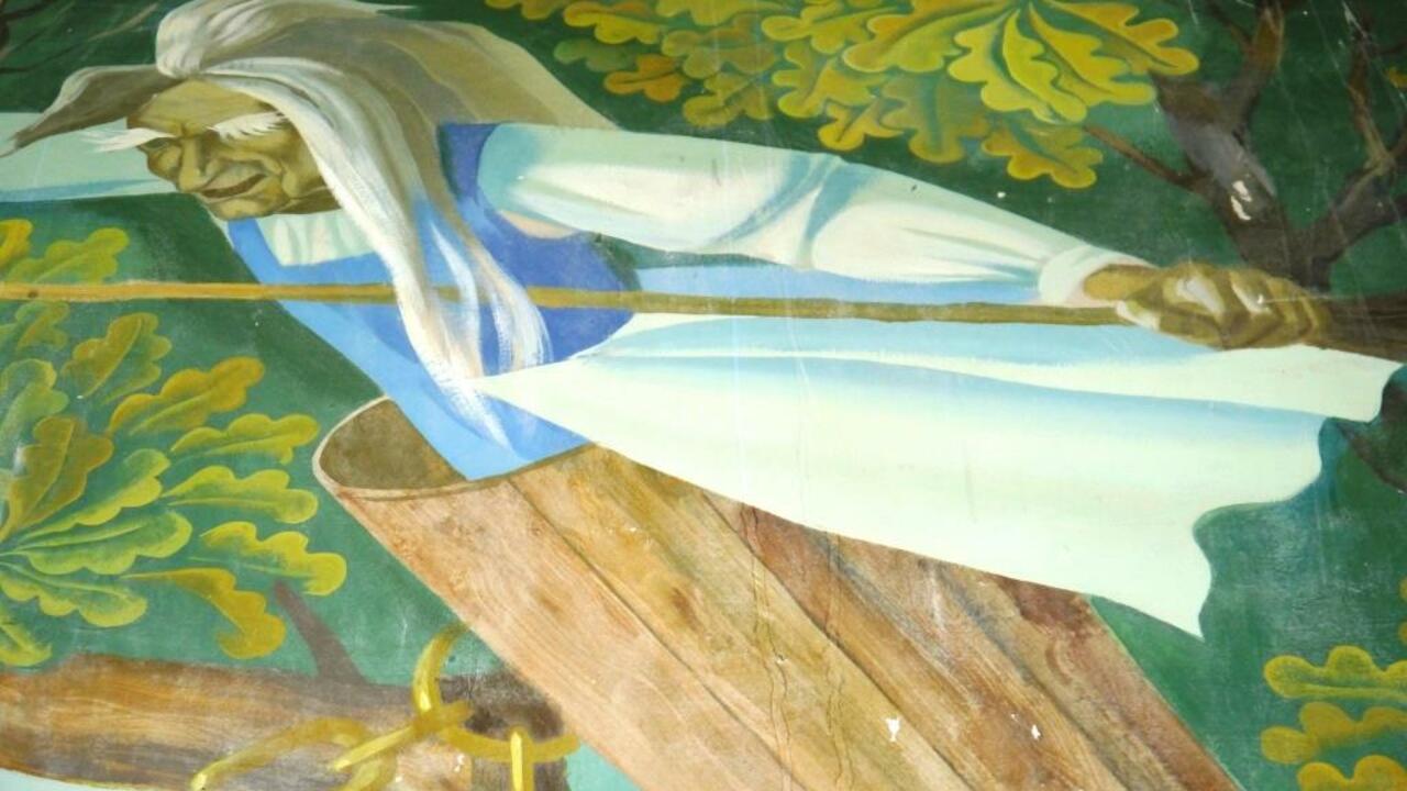 «Единственное сохранившееся полностью изображение «У Лукоморья», некогда бывшее ярким и солнечным, сегодня находится в плачевном состоянии. Образовавшаяся влага у потолков разрушает краску на изображениях, - говорит руководитель пресс-службы Национальной библиотеки РБ Айгуль Япарова. - Но именно в этой картине закодирована одна тайна. В лицах богатырей, вышедших из моря, запечатлены черты самих художников. С картины на нас глядят молодые художники, озорная шутка которых может открыть нам свой секрет уже в XXI веке».