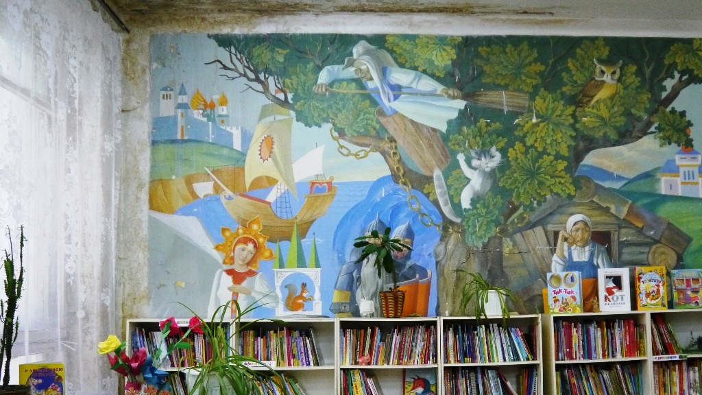 По словам бывшего директора Республиканской детской библиотеки БАССР Елены Гизатуллиной и сотрудников Центра, эти работы созданы командой молодых художников еще в 1970-е годы. В хорошем состоянии сохранилась лишь одна картина «У Лукоморья», находящаяся в Читальном зале для младших школьников. Остальные полотна остались под белилами и красками при ремонте здания Центра в начале 2000-х годов.