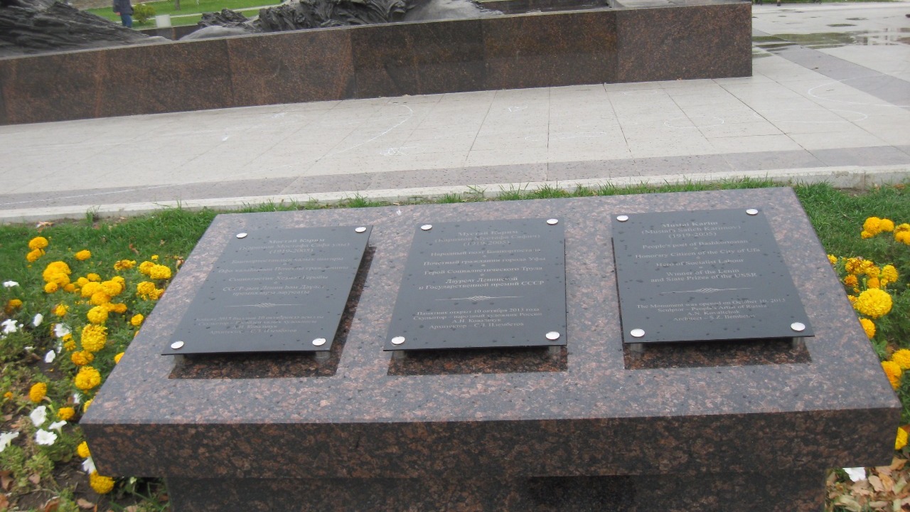 Таким образом, по просьбе земляков - почитателей творчества Мустая Карима увековечены годы жизни выдающегося поэта и писателя республики, его заслуги перед Родиной, а также имена создателей памятника.