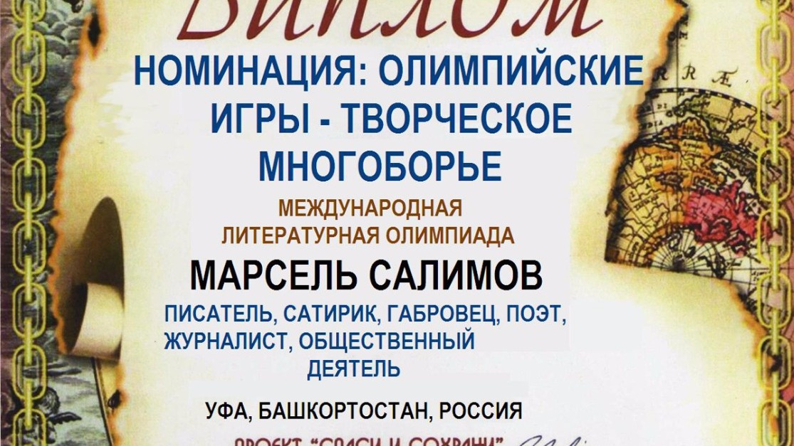 Лауреат Международного многоуровневого конкурса имени де Ришелье Марсель Салимов, награжденный в прошлом Бриллиантовым и Золотым Дюками и Дипломом имени И. Ильфа и Е. Петрова за свое творчество, в этом году был приглашен к участию в Международной литературной олимпиаде в Одессе. По результатам творческих соревнований чемпионами стали сильнейшие «многоборцы» Сергей Дзюба (Чернигов, Украина), Алекс Класс (Сан-Франциско, США), Наталия Мазаник (Москва, Россия), Марсель Салимов (Уфа, Башкортостан, Россия). Наш знаменитый земляк включен в Почетные списки лауреатов Международного многоуровневого конкурса имени Де Ришелье и награжден Дипломом.