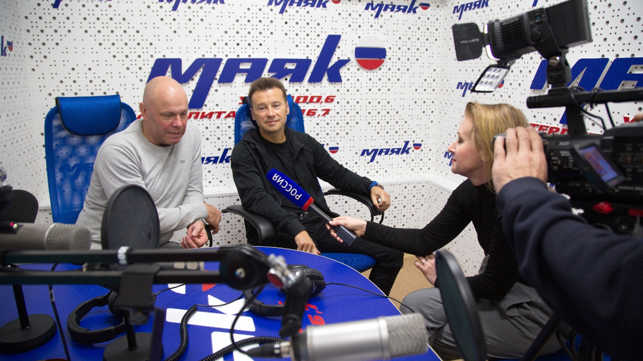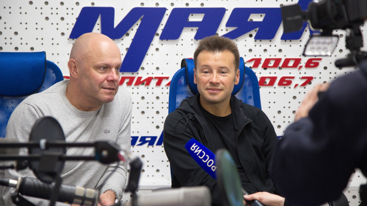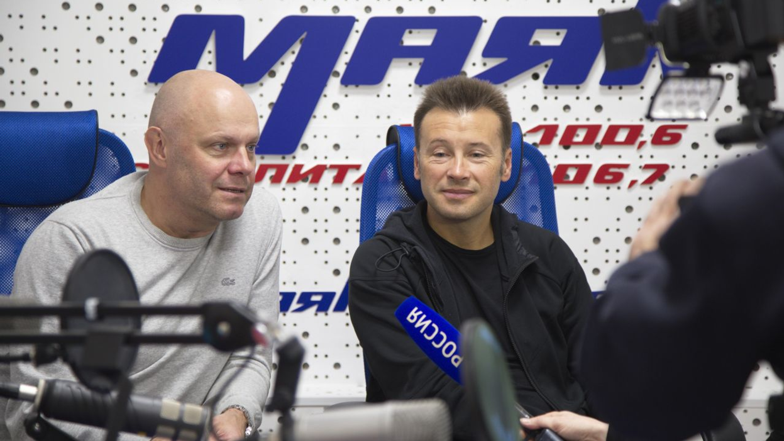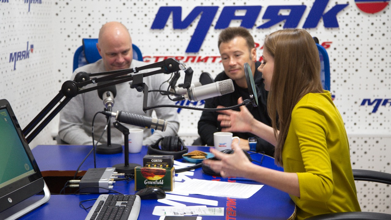 УФА, 14 окт 2016. /ИА «Башинформ», Сергей Захаров/. 14 октября в прямом эфире радиостанции «Маяк Уфа» побывали лидер группы «Несчастный случай» Алексей Кортнев и музыкальный руководитель, композитор, аранжировщик и клавишник группы Сергей Чекрыжов.
