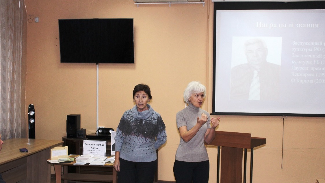 Перед гостями вечера выступила вдова писателя Райса Арслановна. Она рассказала о жизненном и творческом пути писателя, теплых взаимоотношениях в семье и их детях. На вечере присутствовала группа слепоглухих пользователей специальной библиотеки, мероприятие сопровождалось сурдопереводом.