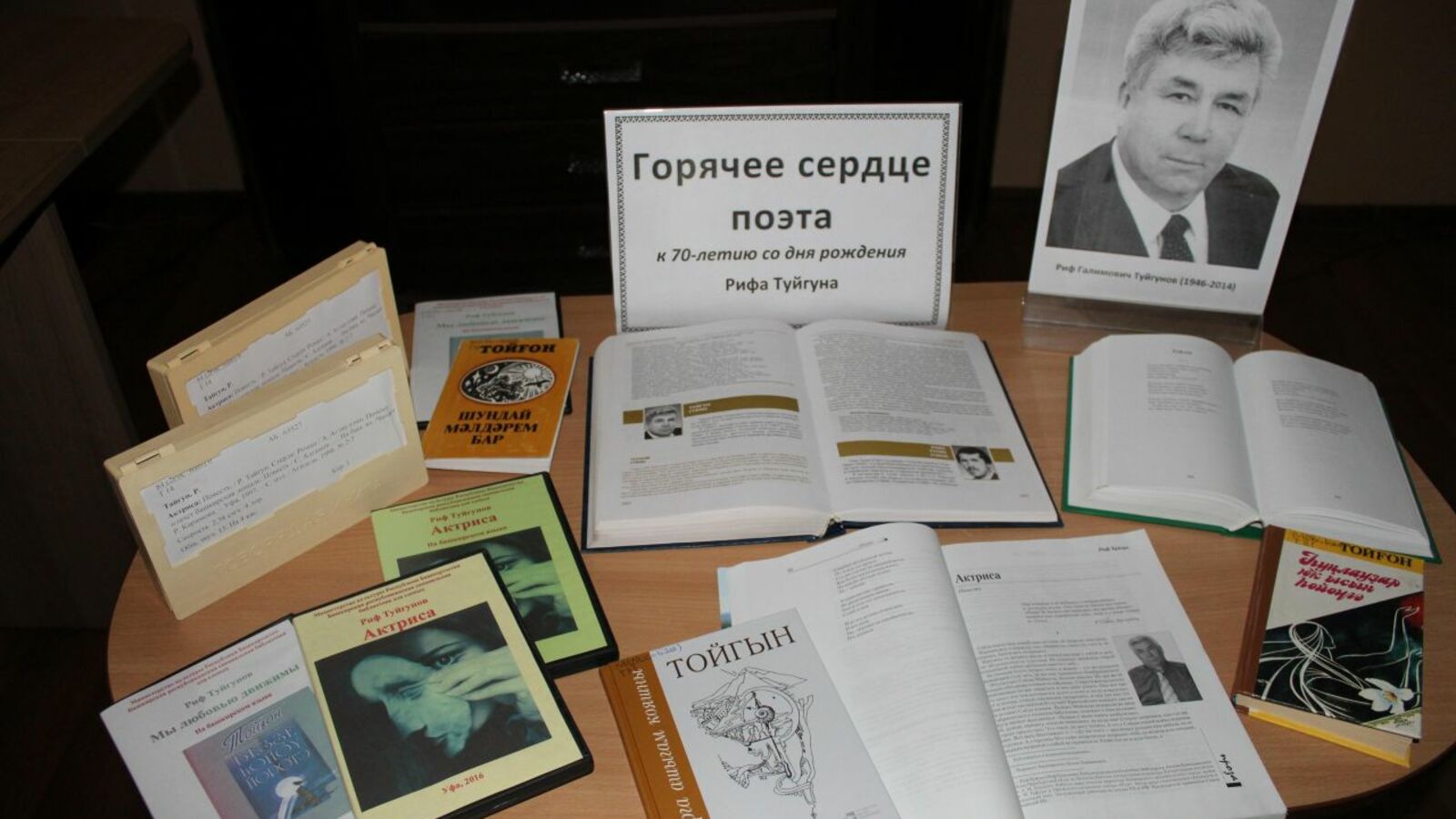 В студии звукозаписи специальной библиотеки озвучена повесть Рифа Туйгунова «Актриса» на русском и башкирском языках. Повесть выпущена на дисках и в ближайшее время поступит в фонд библиотеки и ее филиалов в городах республики.