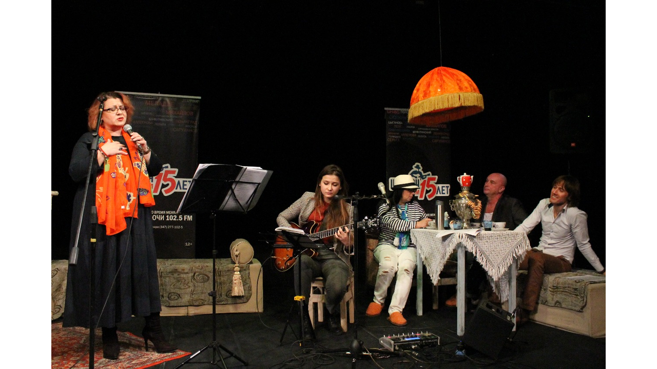 УФА, 28 окт 2016. /ИА «Башинформ», Лилия Муратова, Лейла Аралбаева/. Накануне в Национальном молодежном театре им. М. Карима состоялся квартирник «Одесские песни». Ценители шансона пришли послушать любимых исполнителей.