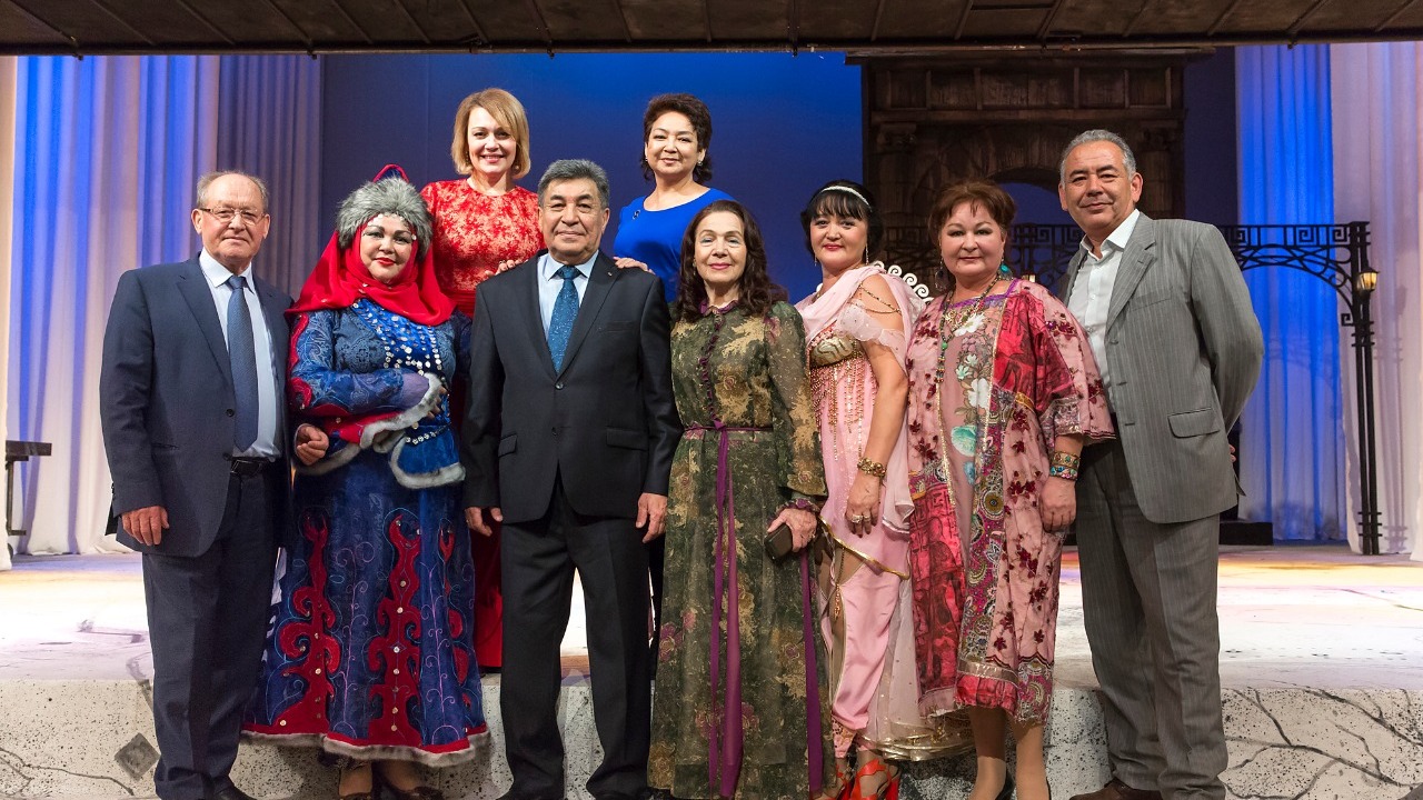 Поздравления почётных гостей - представителей родного Архангельского и Салаватского районов, Оренбургского драматического театра имени Горького, Татарского театра имени Камала, Союза театральных деятелей РБ, однокурсников, руководителей театров республики - вплелись в канву театрализованного представления. Искромётным было шутливое поздравление оренбуржцев, перевоплотившихся в реформаторов российского театра - Станиславского и Немировича-Данченко.