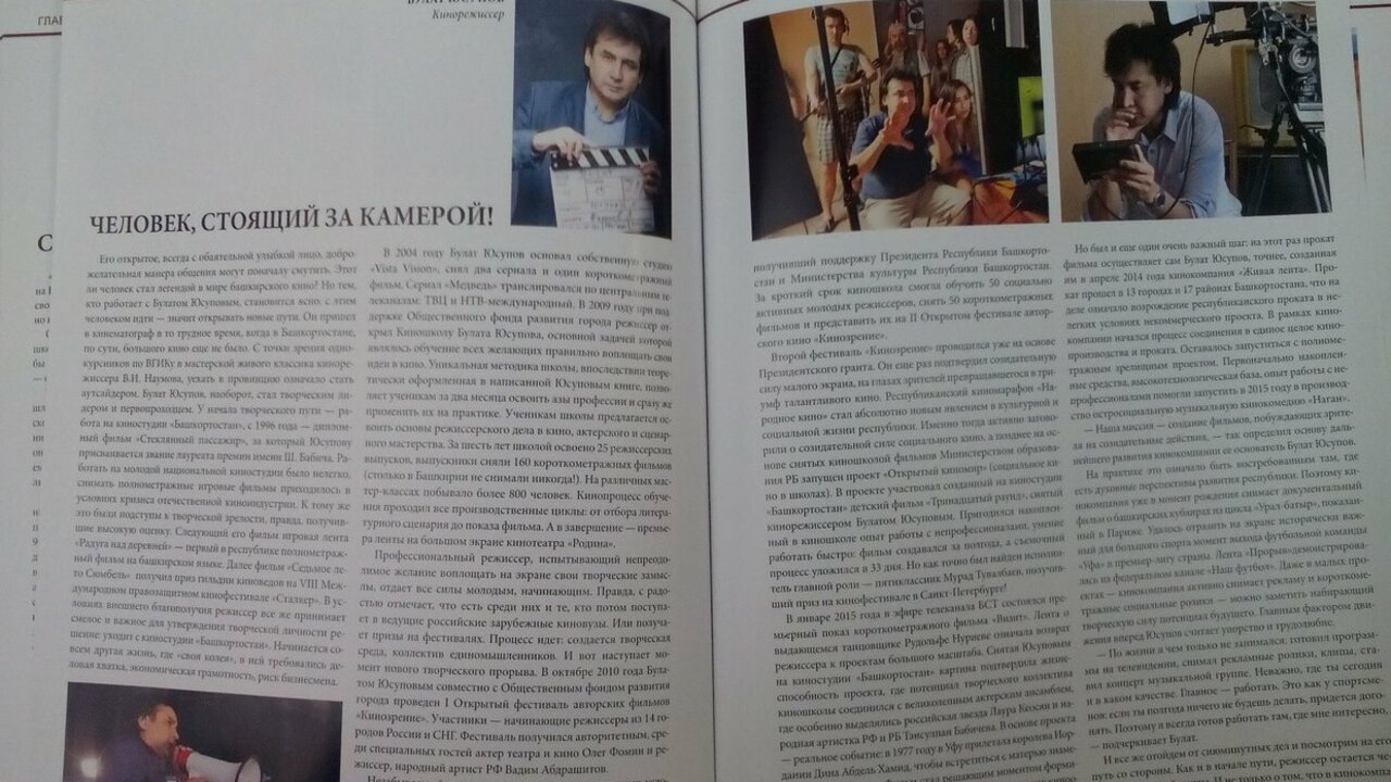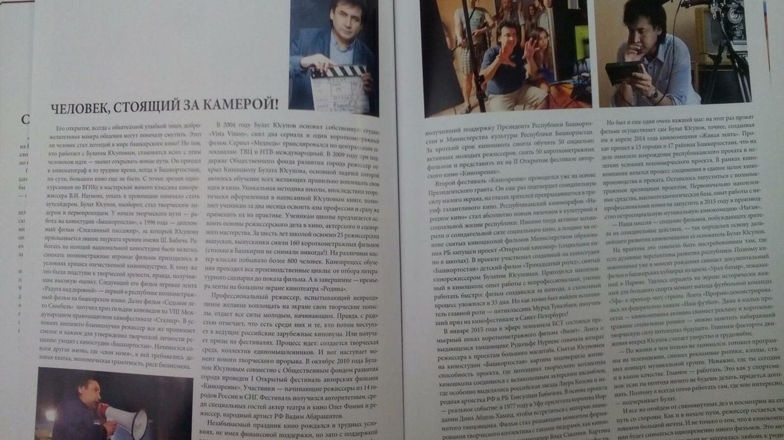 В очерке рассказывается о пути становления Булата Юсупова как режиссера и создании им в 2004 году собственной студии «Vista Vision», где были сняты два сериала, показанные на каналах ТВЦ и НТВ. В 2009 году при поддержке Общественного фонда развития города режиссер открыл Киношколу Булата Юсупова. За шесть лет было освоено 25 режиссерских выпусков и снято 160 короткометражных фильмов. В апреле 2014 года режиссер создал кинокомпанию «Живая лента», яркими работами которой стали фильмы «Визит», «Прорыв», кинокомедия «Наган» и находящийся в производстве полнометражный исторический фильм «Бабич».