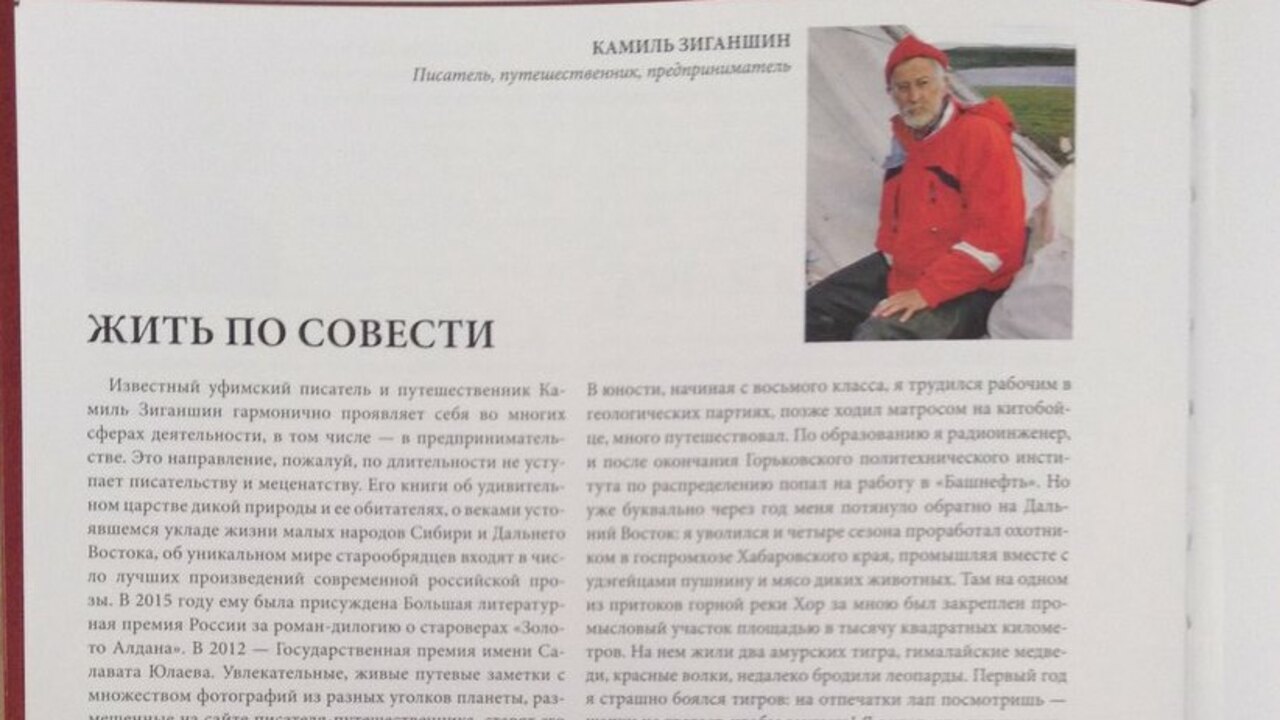 Известный уфимский писатель, путешественник и предприниматель Камиль Зиганшин с 2001 года руководит предприятием связи «ШОК». Оно несколько раз занимало первые места в соревновании среди нескольких десятков российских партнеров «Моторолы», получило от Правительства за вклад в экономику Башкортостана диплом первой степени. В 2003-2004 годах Камиль Зиганшин работал директором Уфимского филиала «Билайн», в 2005-2008 вместе с опытным банкиром Александром Феоктистовым возглавлял Банк Москвы. «Для предпринимательства нужна особая предрасположенность, слишком это рисковое, требующее полной самоотдачи занятие», - считает Камиль Фарухшинович.