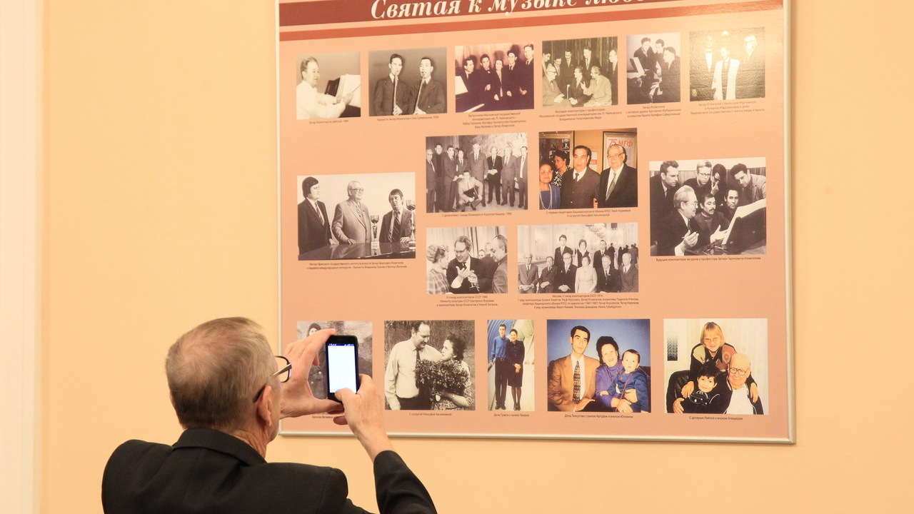 УФА, 20 дек 2016. /ИА «Башинформ», Лейла Аралбаева/. В Башкирском театре оперы и балета к 100-летию Загира Исмагилова открылись тематические выставки. В музее два стенда посвящены личности композитора, вехам его творческой биографии, общению с коллегами. Также представлены редкие кадры в кругу семьи.