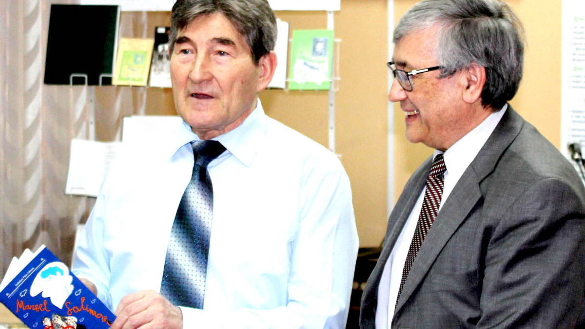 УФА, 1 апр 2017. /ИА «Башинформ», Лейла Аралбаева, Олег Кушнерук/. Накануне Международного дня смеха в Башкирской республиканской специальной библиотеке для слепых в рамках фестиваля социальных практик прошла презентация «говорящей» книги для незрячих и слабовидящих «Президентский кот». Она написана известным писателем-сатириком и поэтом, заслуженным работником культуры РФ и БССР, лауреатом премии «Золотое перо России» Марселем Салимовым. Книга озвучена самим автором в студии звукозаписи библиотеки для слепых и выпущена в серии «Золотые голоса». Ко Дню смеха любители веселого жанра получили этот подарок.
