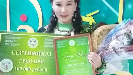УФА, 8 апр 2017. /ИА «Башинформ», Лейла Аралбаева/. В Нефтекамске завершился XVI Международный фестиваль башкирской и татарской песни «Дуҫлыҡ моңо» имени Фариды Кудашевой. Было объявлено имя обладательницы Гран-при. Ею стала Альфия Мурзабаева из Зианчуринского района. Она получила сертификат на сумму 100 тыс рублей.