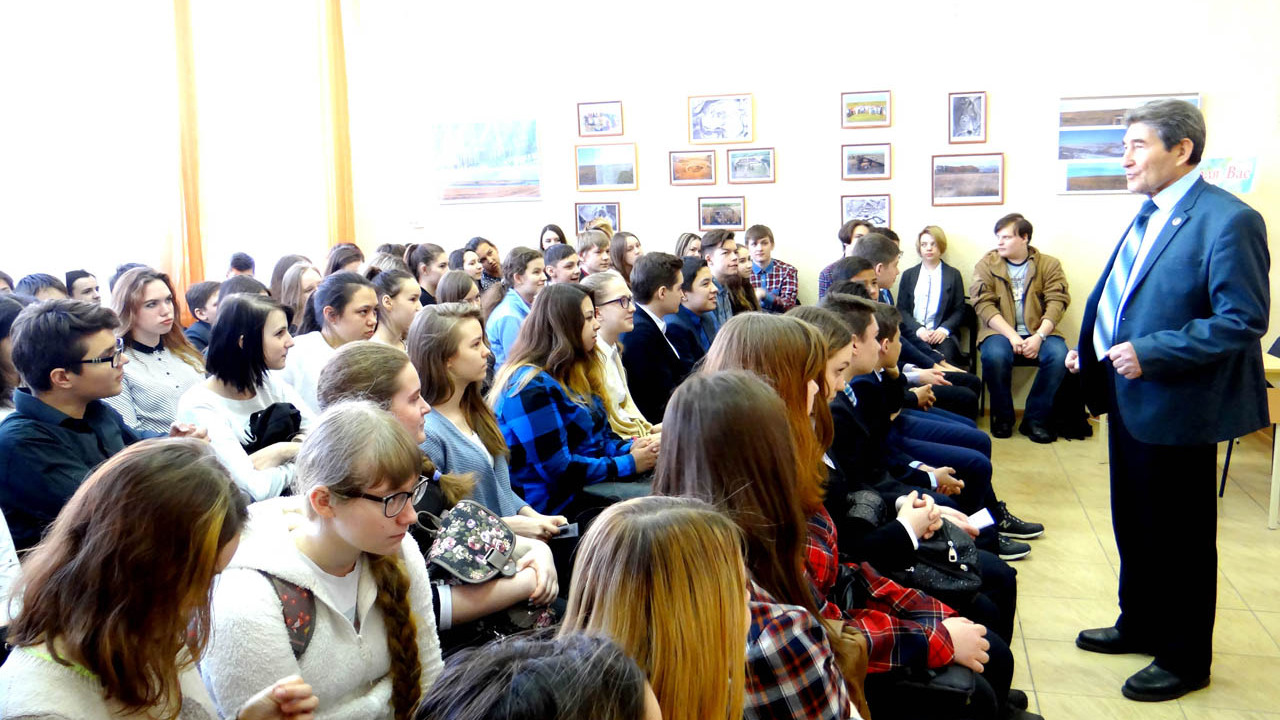УФА, 10 апр 2017. /ИА «Башинформ», Алим Фаизов/. В Центральной городской библиотеке Уфы состоялся творческий вечер лауреата международных литературных премий имени Сергея Михалкова, имени Владимира Гиляровского (Россия), «Алеко» (Болгария) и Николая Гоголя (Украина), обладателя Индульгенции Международного Дома юмора и сатиры (Габрово), почетных званий «Золотое перо России» и «Серебряное перо Руси» Марселя Салимова (Мар. Салим). Как сообщил библиотекарь Азат Абдрафиков, в лекционный зал главной библиотеки столицы пришли учащиеся школы №97 Уфы и студенты Башкирского института социальных технологий.