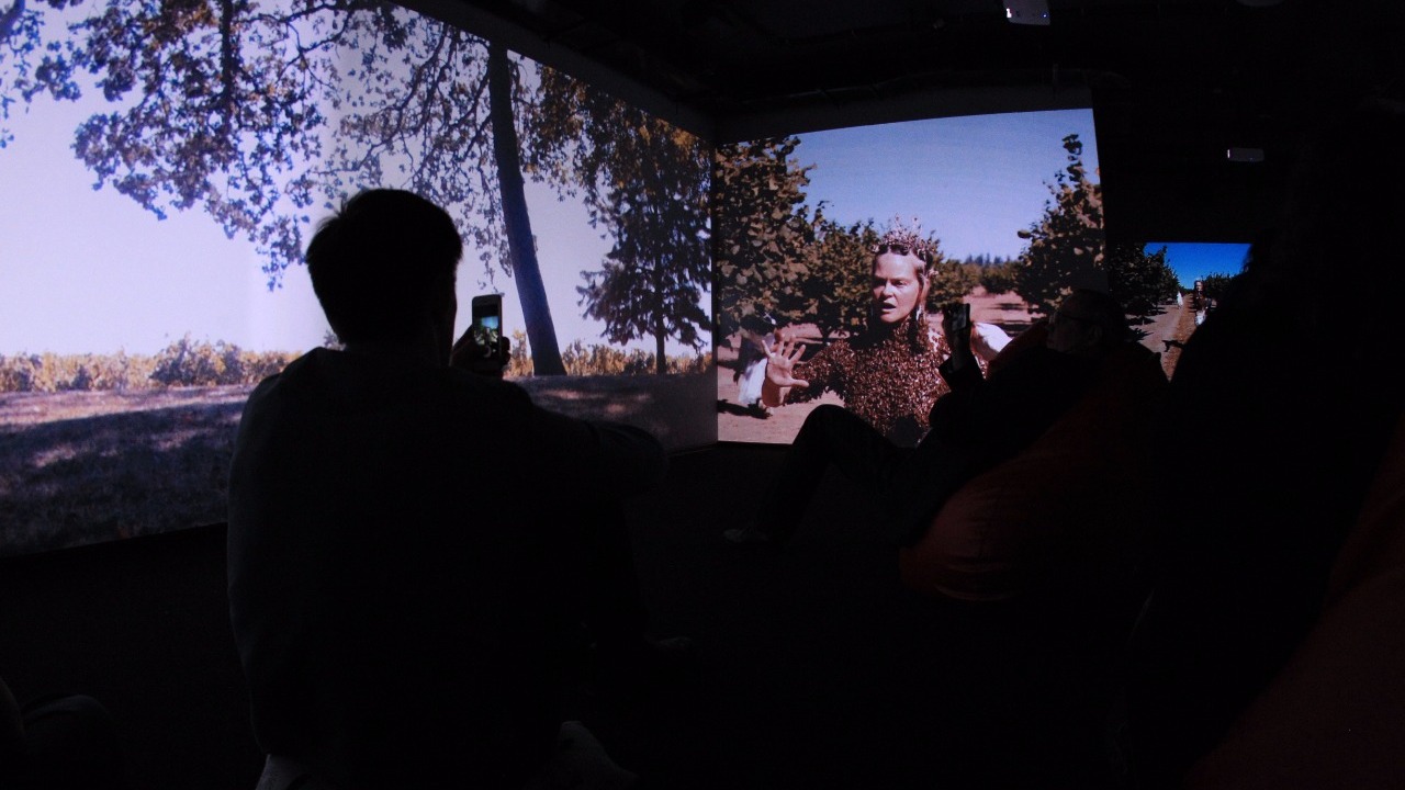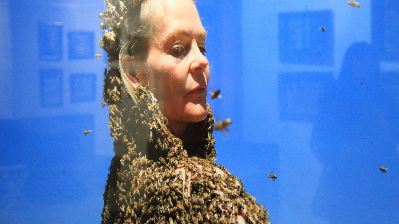 Собравшимся журналистам и деятелям искусства показали фильм, посвященный апиарту. Зрители познакомились с более чем 20-летним опытом художников из Великобритании, Канады, США, вдохновленных уникальным устройством пчелиной семьи, их бесценным вкладом в формирование экосистемы и совершенством форм, создаваемых пчелами. Они выбирают пчел героями своих картин, дают возможность пчёлам самим «дорисовывать» композиции. Одна из героинь фильма - «Королева пчёл» Сара Мапелли, которая танцует, находясь внутри целой накидки из насекомых.