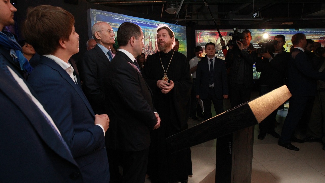 Полпред также зачитал приветствие Руководителя Администрации Президента Российской Федерации Антона Вайно, в котором отмечено, что «передовые информационные мультимедийные технологии позволят посетителям по-новому взглянуть на богатейшее историческое, героическое, культурное наследие страны, прикоснуться к нашим духовным корням и истокам, почувствовать личную сопричастность к судьбе Отечества».
