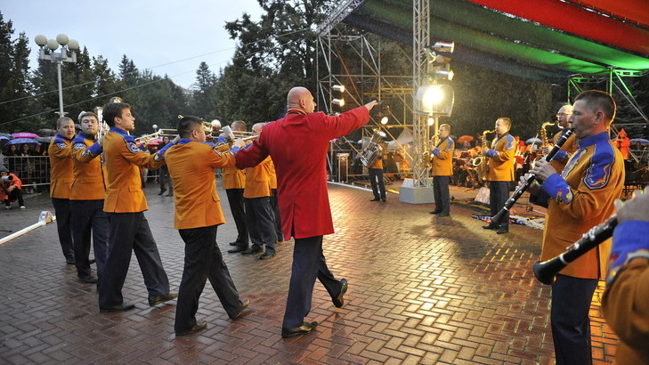 УФА, 8 сен 2017. /ИА «Башинформ», Лейла Аралбаева/. В Уфе в парке им. В.И. Ленина (им. Матросова) под дождем проходит заключительный концерт Марафона классической музыки. Открыл программу Духовой оркестр Городского дворца культуры г. Уфы (худрук Борис Вассимирский). Впервые в Уфе выступают екатеринбургский Танцующий оркестр «Уралбэнд» (худрук Александр Павлов) и Концертный духовой оркестр г. Чебоксары (худрук Владимир Петров).