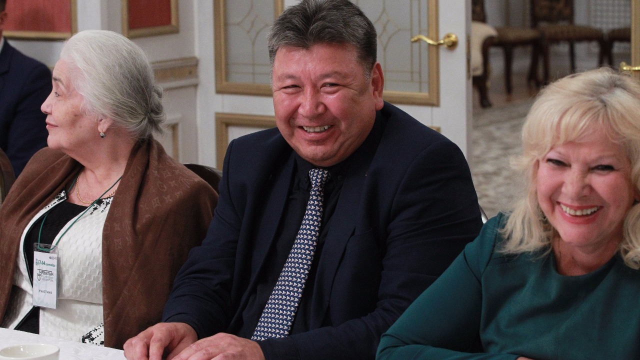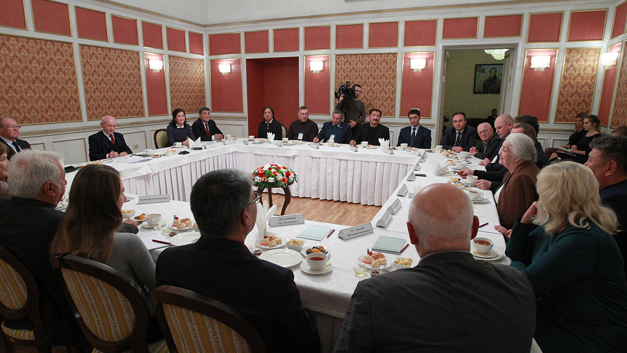 УФА, 12 сен 2017. /ИА «Башинформ», Лейла Аралбаева/. Глава Башкортостана Рустэм Хамитов встретился с деятелями культуры VI Международного фестиваля тюркоязычных театров «Туганлык». На встрече присутствовали министр культуры Амина Шафикова, члены жюри и коллегии критиков, директора уфимских театров, представители театров-участников, гости фестиваля - известный российский актер, ректор Театрального института им. Щукина Евгений Князев, зав. кабинетами драматических и национальных театров Союза театральных деятелей России Марина Корчак, супруга народного поэта Кабардино-Балкарии Кайсына Кулиева Элизат Кулиева, секретарь СТД России, председатель Совета республик Борис Манджиев.