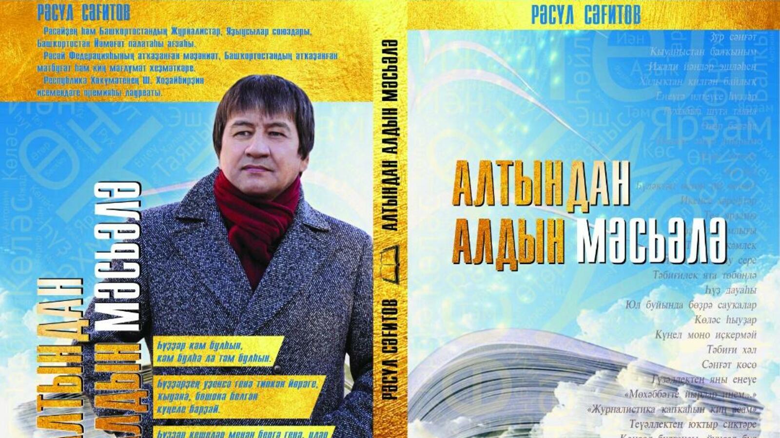 УФА, 21 сен 2017. /ИА «Башинформ», Алим Фаизов/. Известный в республике журналист и писатель Расуль Сагитов издал очередную книгу «Алтындан алдын мәсьәлә». Сборник, название которого с башкирского языка переводится как «Ценнее золота вопрос», составлен из восьми самостоятельных частей, содержащих радиовыступления, статьи последнего времени автора, опубликованные в периодической печати по общественно-политической, социально-экономической, культурной, литературной, экологической, нравственной тематике, а также эксклюзивные суждения о журналистике, языке, тексты собственных интервью различным средствам массовой информации, мысли о современниках, записи личного интернет-блога, короткие рассказы.