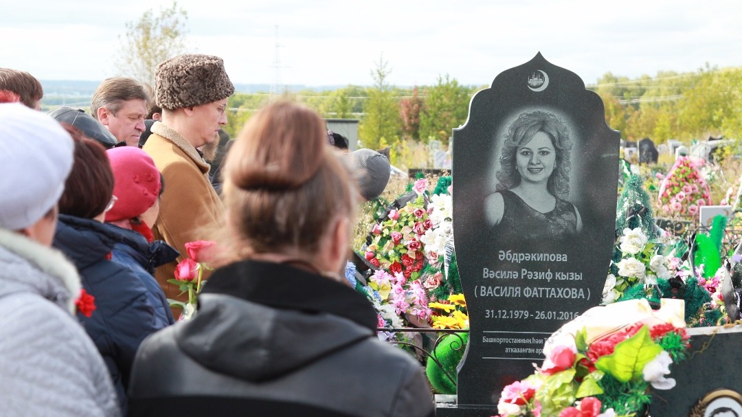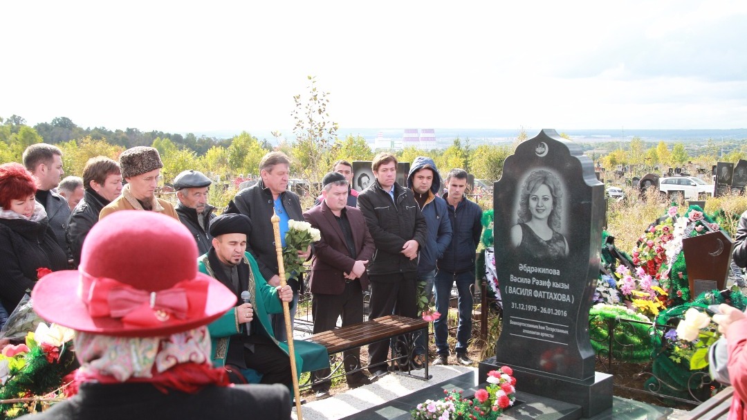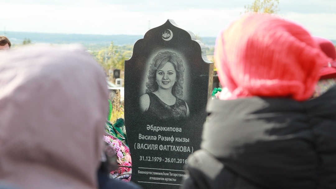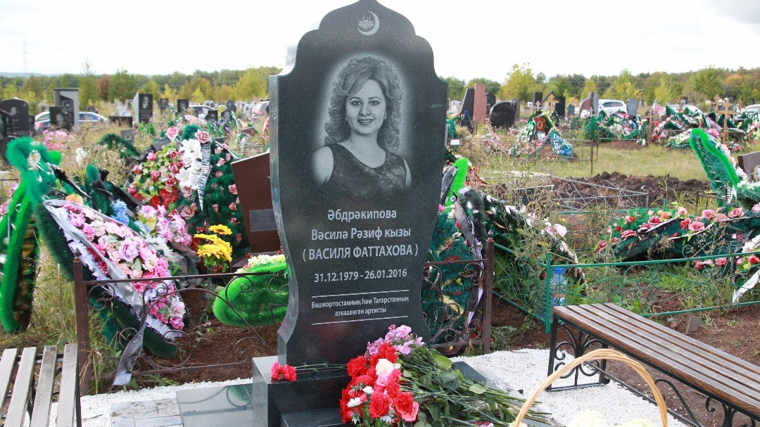 УФА, 26 сен 2017. /ИА «Башинформ», Лейла Аралбаева/. Сегодня в Уфе открылся надгробный памятник безвременно ушедшей звезде башкирской и татарской эстрады Василе Фаттаховой. Церемонию на Южном кладбище открыл хазрет, который зачитал молитву. В минуты открытия мемориала из-за туч выглянуло яркое осеннее солнце.