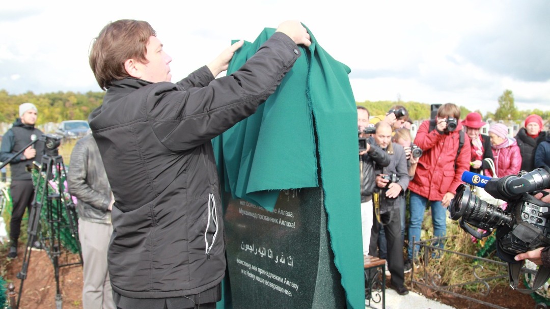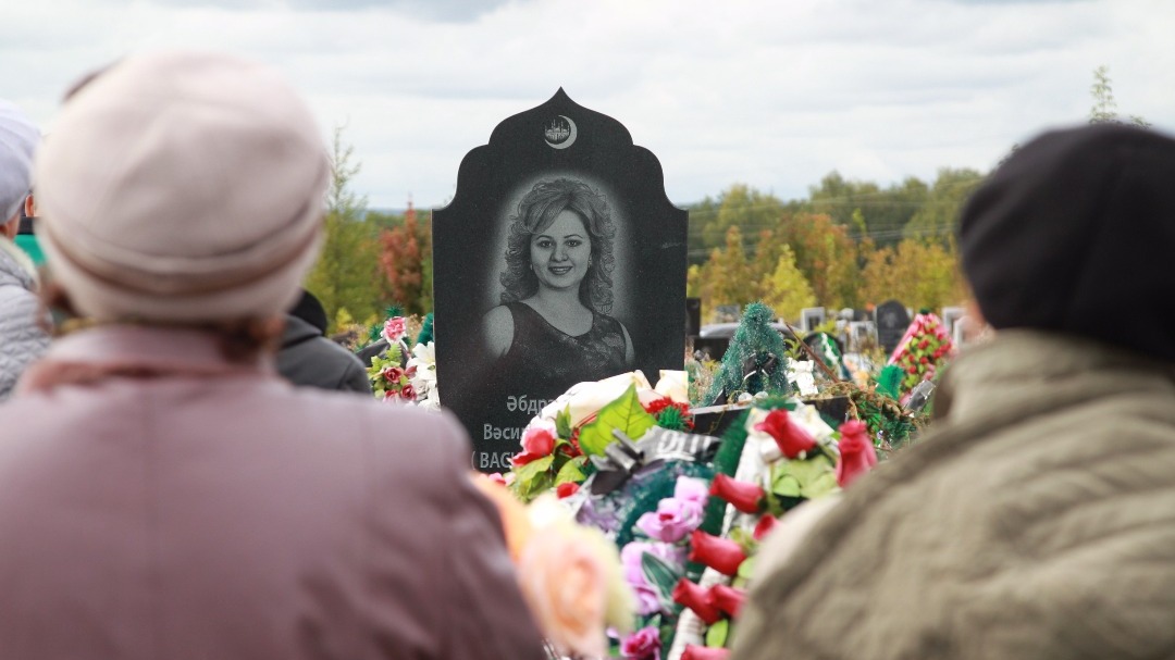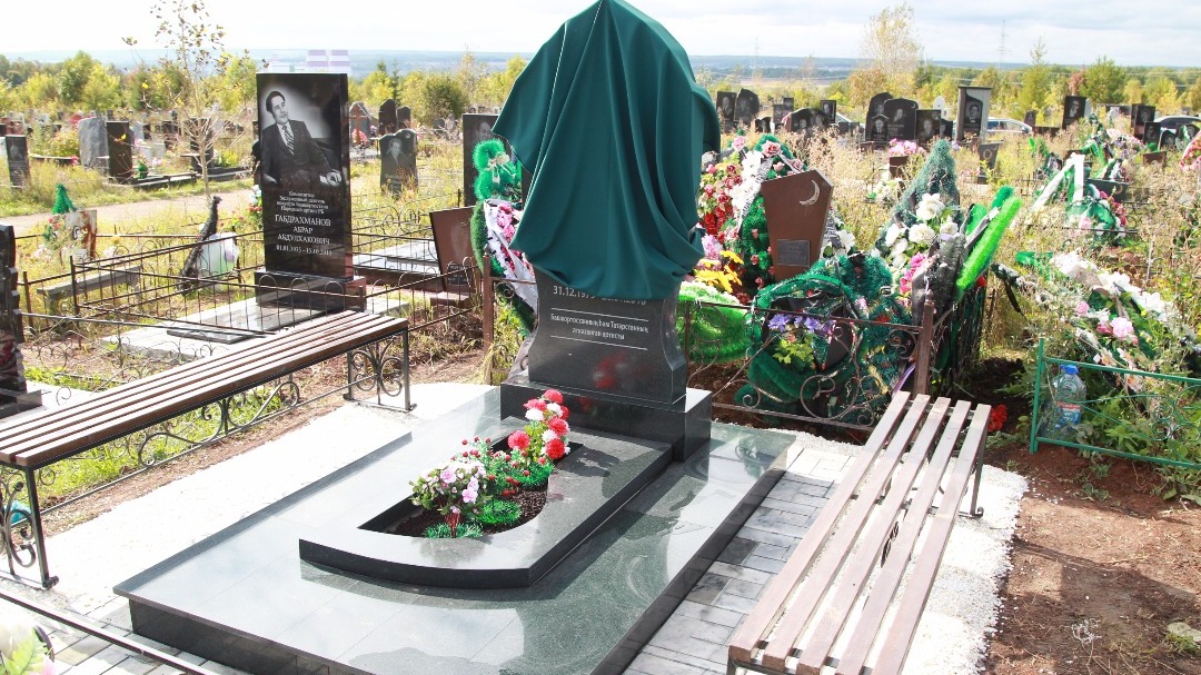Мероприятие организовал супруг Ильгиз и близкие певицы. На памятнике из черного гранита в виде буквы V, первой в имени артистки, размещен ее самый известный портрет.