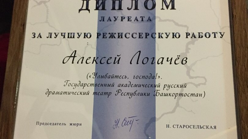 Русдрамовцы завоевали две награды. Дипломы лауреатов получили: за лучшую режиссерскую работу - Алексей Логачев, за яркий эпизод - Владимир Кузин.