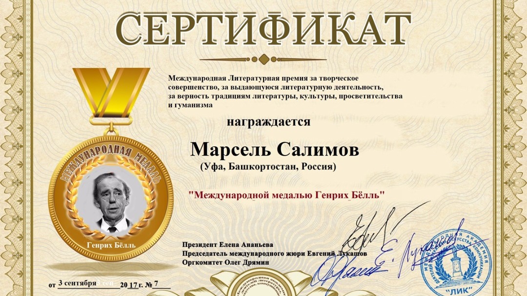 Башкирский писатель-сатирик Марсель Салимов награжден медалью Генриха Бёлля