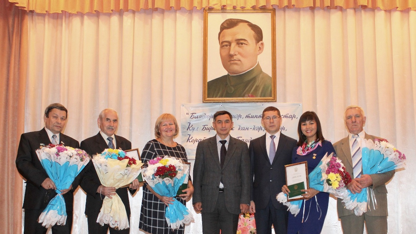 УФА, 13 окт 2017. /ИА «Башинформ»/. В Кугарчинском районе Башкортостана прошли торжественные мероприятия, посвященные чествованию лауреатов премии им. Ш. Худайбердина. На малую родину политического и общественного деятеля и журналиста в деревню Худайбердино приехали лауреаты Правительственной премии в области журналистики 2017 года - корреспондент газеты «Стерлитамакский рабочий» Марина Воронова, обозреватель агентства «Башинформ» Лейла Аралбаева и профессор БашГУ Фаниль Кузбеков.
