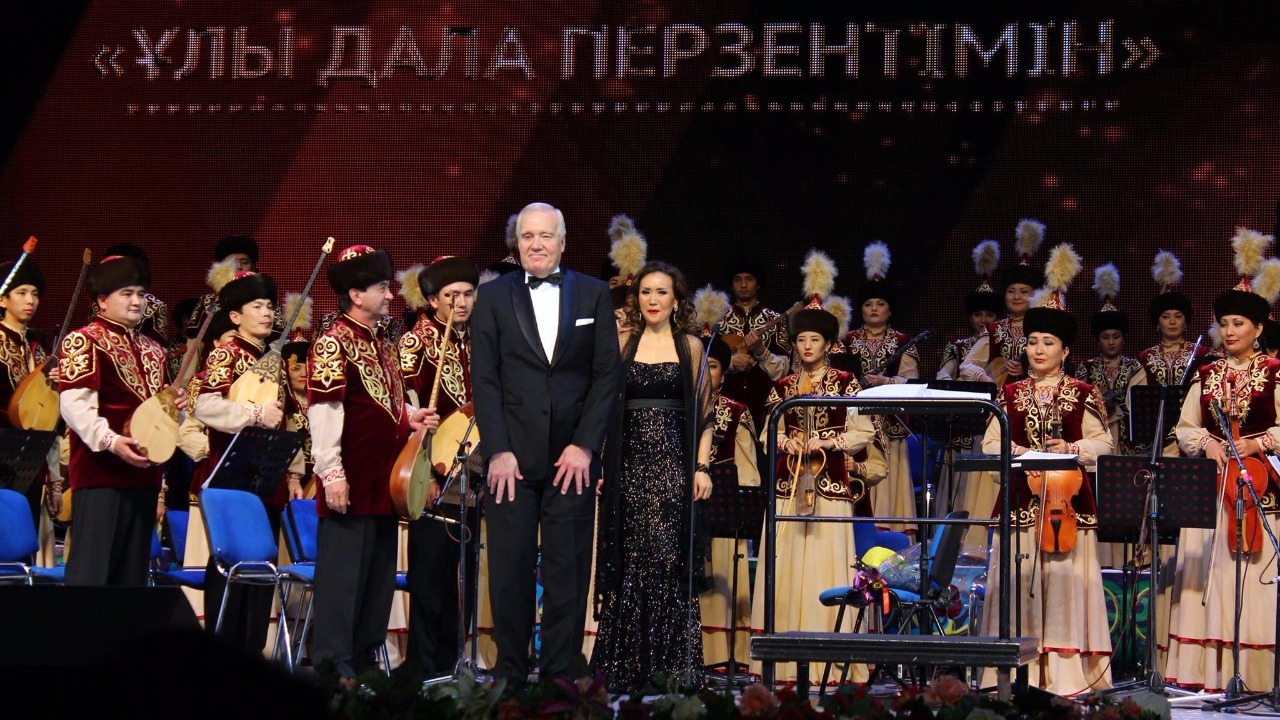 УФА, 31 окт 2017. /ИА «Башинформ», Лейла Аралбаева/. Известный музыкант и дирижер, заслуженный артист России, народный артист Башкортостана Рамил Гайзуллин принял участие в праздновании 70-летия главного дирижера Оркестра казахских народных инструментов Государственной филармонии, музыканта и композитора Айткали Жаимова в Казахстане. Мероприятие прошло в Концертном зале «Астана».