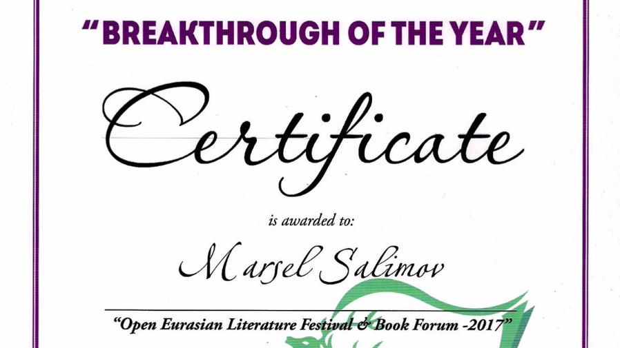 За новую книгу Марселю Салимову присуждена специальная премия «Прорыв года». Как отметил руководитель издательского дома «Hertfordshire Press» Марат Ахмеджанов, «со своей оригинальной сатирой и юмором знаменитый башкирский писатель сделал настоящий творческий прорыв».