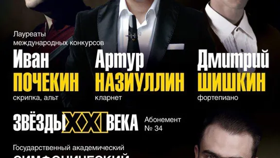 В концерте принимают участие лауреаты международных конкурсов, скрипач Иван Почекин, пианист Дмитрий Шишкин и Государственный академический симфонический оркестр России им. Е. Светланова (дирижер Дмитрий Крюков). Будут исполнены произведения Бруха, Лало, Сен-Санса.