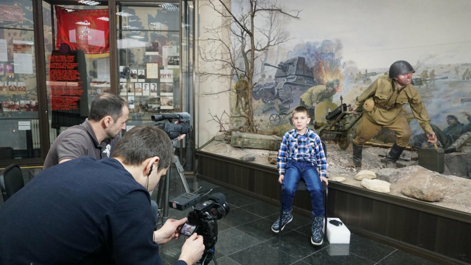УФА, 13 фев 2018. /ИА «Башинформ», Наталья Овчарук/. 12 февраля в уфимском музее Боевой Славы прошли съемки детей «Форума маленьких героев». Девять ребят из разных районов республики приехали в столицу Башкирии, чтобы рассказать на камеру о своих подвигах.