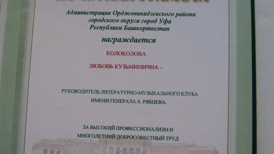 УФА, 19 фев 2018. /ИА «Башинформ», Алим Фаизов/. Литературно-музыкальный клуб имени генерала А.А. Рябцева накануне отметил 40-летие с начала своей деятельности. Это одно из старейших клубных объединений Орджоникидзевского района города Уфы. Клуб любителей литературы и музыки основан в 1978 году супругами Александром Андреевичем Рябцевым и Валентиной Альфредовной Ольте. В 1999 году в память об общественном деятеле, писателе, поэте, генерале Рябцеве клубу было решено присвоить его имя.