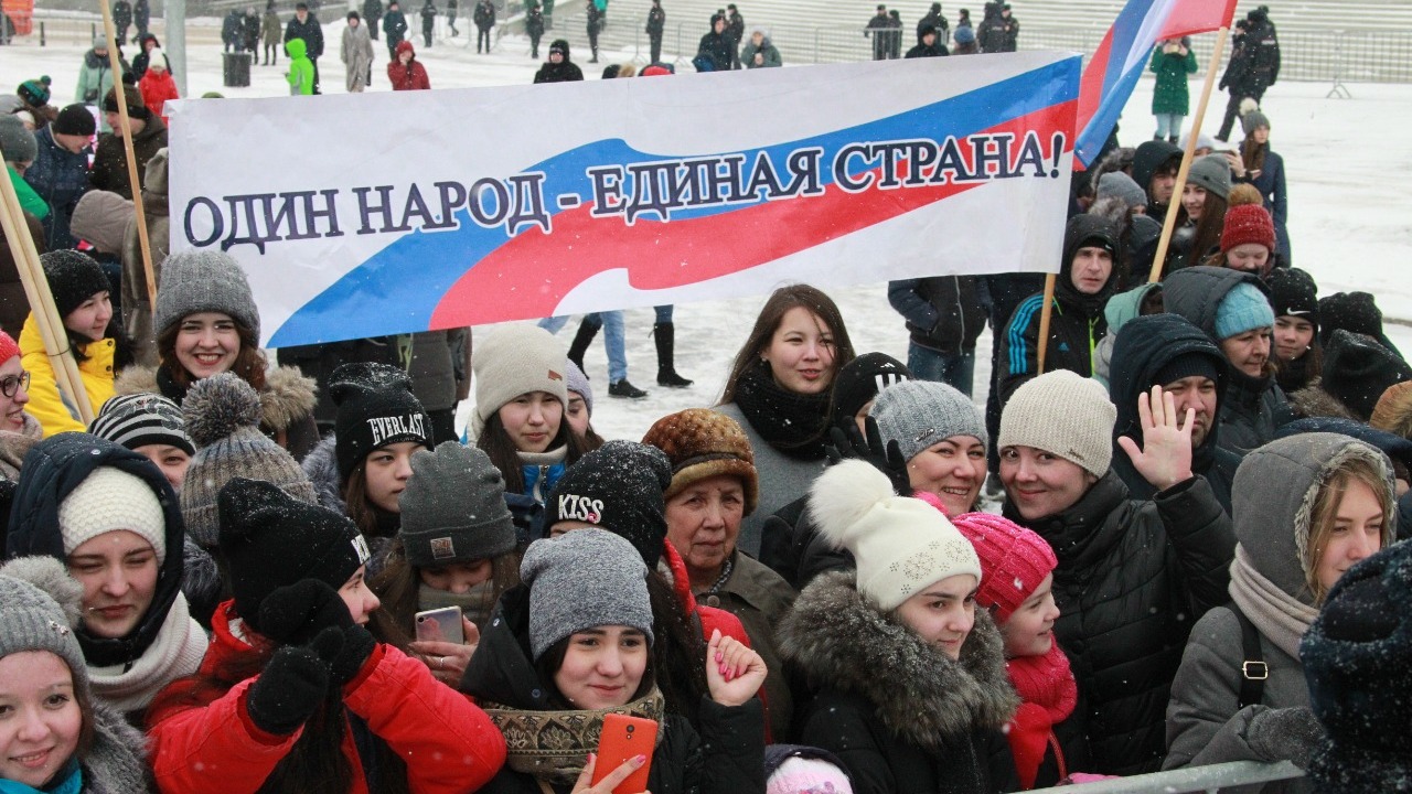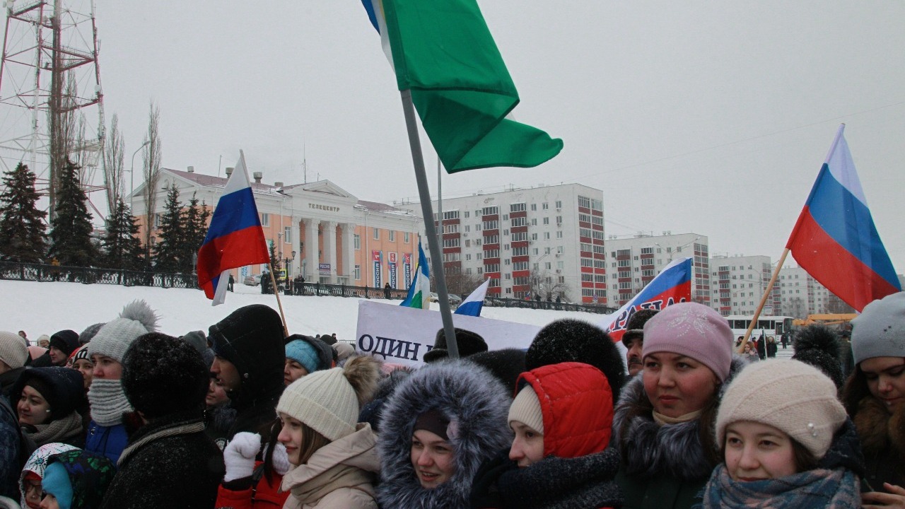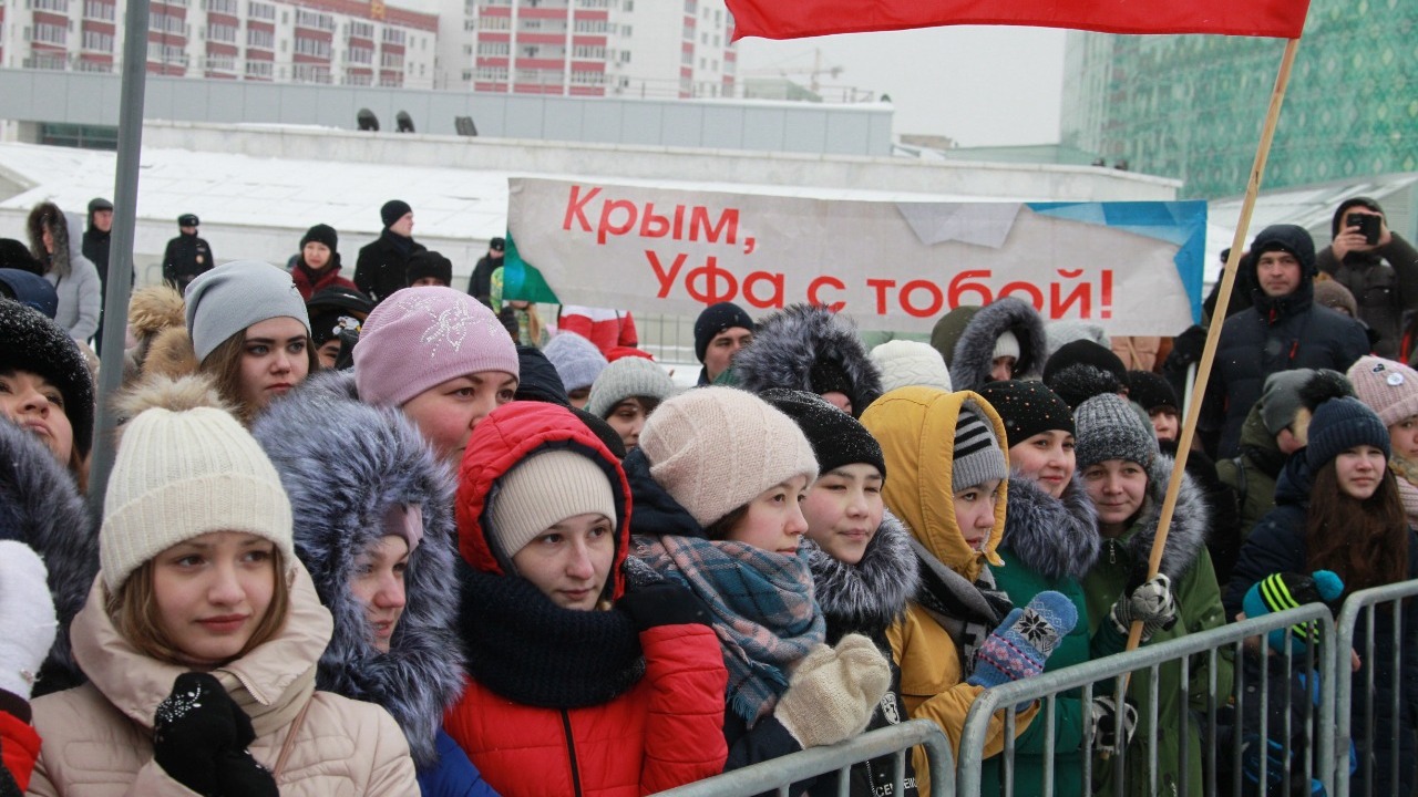 УФА, 18 мар 2018. /ИА «Башинформ», Лейла Аралбаева/. В Уфе на площади рядом с Конгресс-холлом состоялся праздничный концерт «Крымская весна». Мероприятие было посвящено четырехлетию вхождения республики Крым и города Севастополя в состав России. Организатором выступила Ассамблея народов Республики Башкортостан.