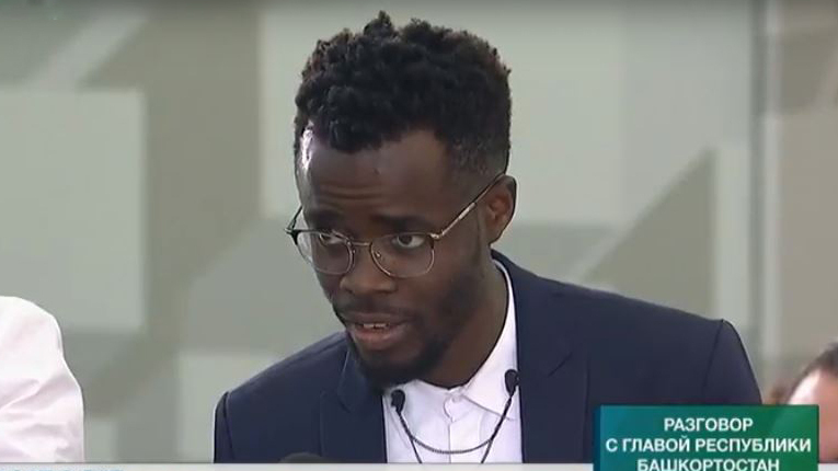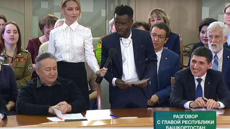 Эштейта Матеуш поздоровался с главой республики на башкирском языке и сообщил, что считает себя «афробашкиром», поскольку живет здесь уже шесть лет.