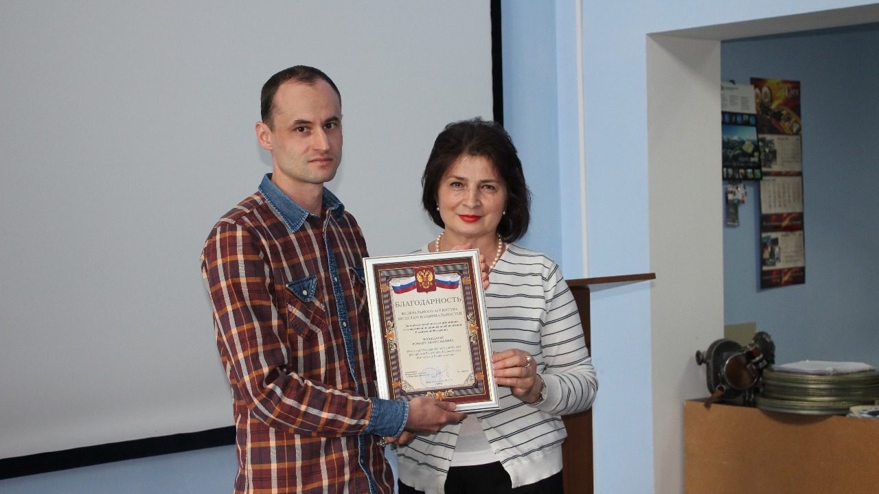 Во время встречи с коллективом Зугура Рахматуллина наградила благодарственными письмами Федерального агентства по делам национальностей двух членов Союза кинематографистов Башкортостана - кинодраматурга Зухру Буракаеву и режиссера Романа Пожидаева с формулировкой «За значительный вклад в реализацию государственной национальной политики Российской Федерации».