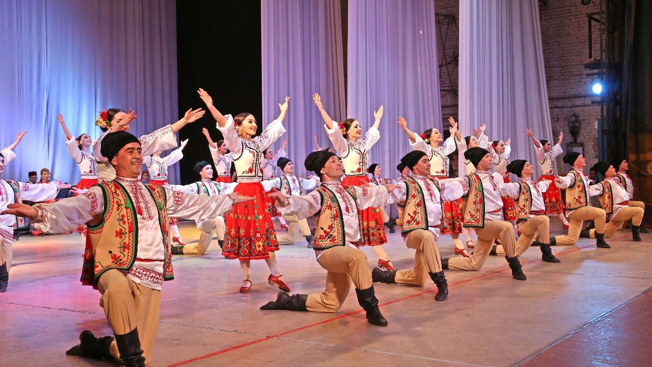 В рамках концертной программы были исполнены вокально-хореографические композиции - башкирские «Илкәйем», «Йыуаса», «Наследие Салавата», задорный татарский танец «Өлгөр», виртуозный матросский танец «Яблочко», лирический женский казахский танец «Ак кайындар», чувашский танец «Уяв таши», удмуртский танец «Зигзаги», аргентинский танец «Маламбо», хоры «Матушка Россия» и «Ливенка», был восстановлен молдавский танец «Букурия».