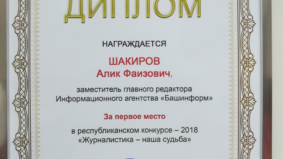 Победителем конкурса «Журналистика — наша судьба», удостоенным первого места, признан заместитель главного редактора агентства «Башинформ» Алик Шакиров за книгу «Новости — наша профессия».