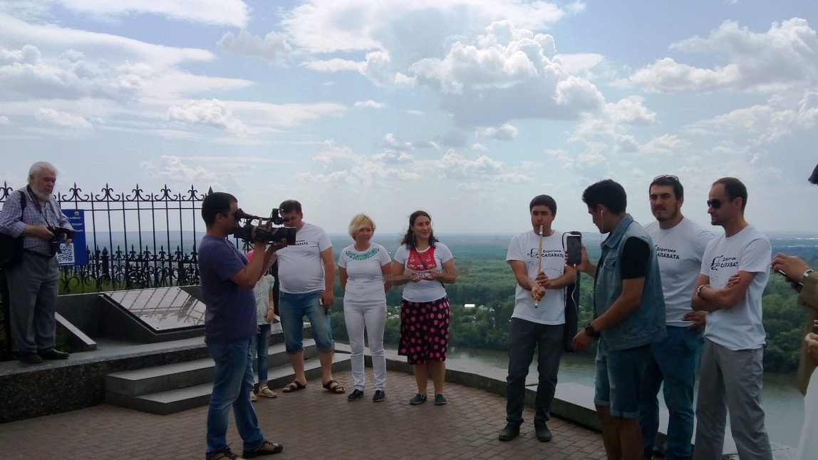 Сегодня киноэкспедиция «Дорогами Салавата» прибыла в Уфу. На площади Салавата Юлаева съемочную группу во главе с председателем Союза кинематографистов Башкортостана Фаритом Габитовым встретили друзья, родные и журналисты.