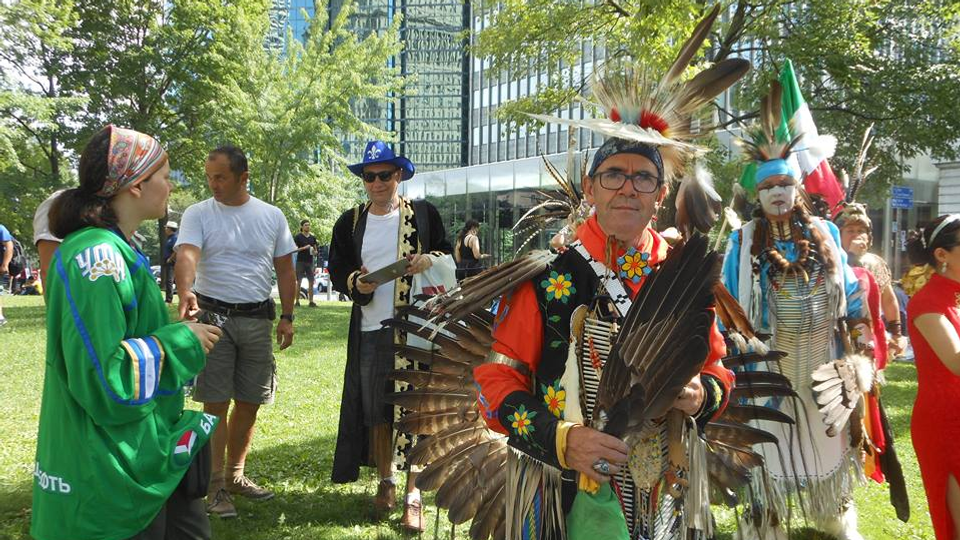 УФА, 14 авг 2018. /ИА «Башинформ», Розалия Валеева/. В центре Монреаля прошел восьмой Défilé Nuestroamericana - праздник костюмов, обрядов, песен и танцев этнических общин Канады, которое организуется Первыми нациями, населявшими доколумбовую Америку.