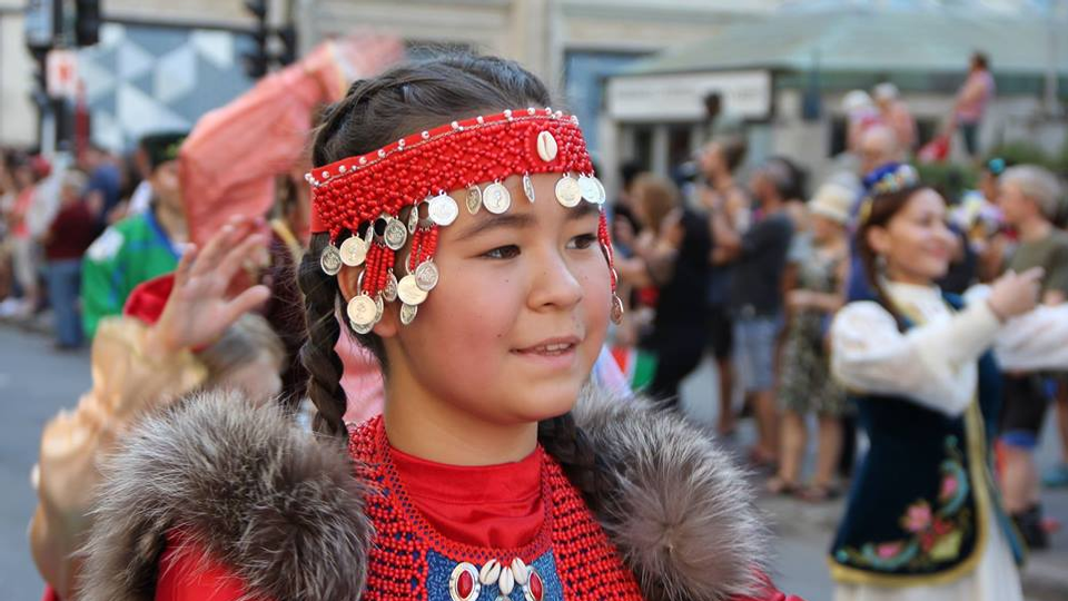 На параде-карнавале культурных общин группа, представляющая Башкортостан и Татарстан, не просто прошла под флагами наших республик, а протанцевала весь путь под зажигательные татарские и башкирские мелодии: здесь звучали и звуки курая, и «бию койләре», и известная песня Васили Фаттаховой «Туган як», и новый хит «Түбәтәй» Айгуль Бариевой.