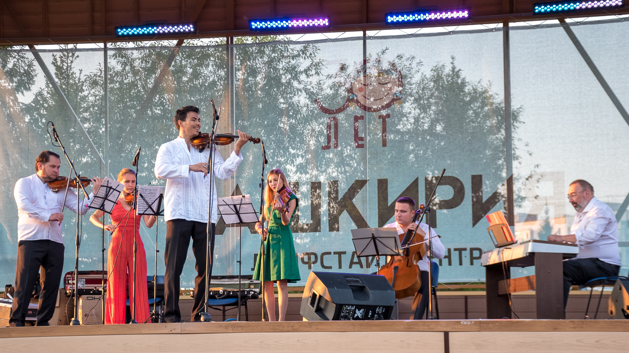 Для уфимцев на сцене около лайфстайл-центра «Башкирия» выступил Струнный квартет под руководством скрипача и дирижера, лауреата Государственной молодежной премии им. Ш. Бабича Рустэма Сулейманова. Музыканты исполнили концерты Антонио Вивальди «Времена года».