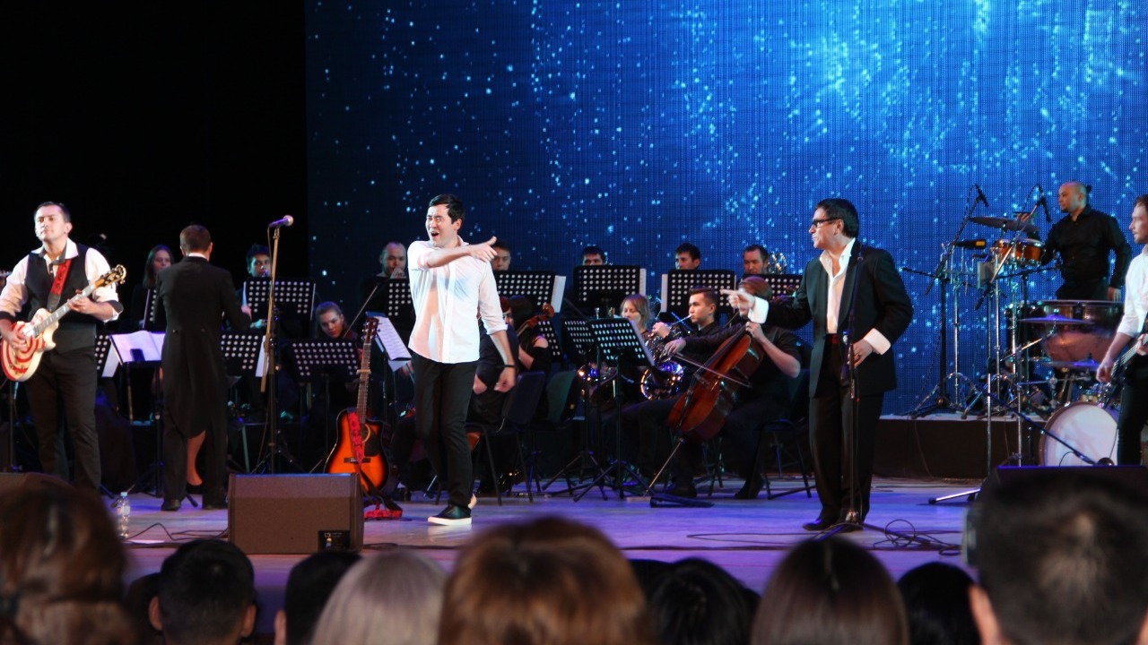В концерте приняли участие музыканты Национального симфонического и Молодежного симфонического оркестров, образовав сборный состав под управлением Линара Давлетбаева.