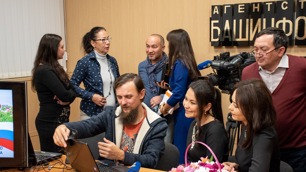 Сегодня в конференц-зале агентства «Башинформ» было организовано онлайн-общение европейских музыкантов с башкирскими коллегами. В рамках встречи состоялось виртуальное знакомство Эрика и Гауди с Зилией Бахтиевой. Зилия вместе с сестрой Юлией подарили коллегам башкирскую народную песню «Кинйәкәй».