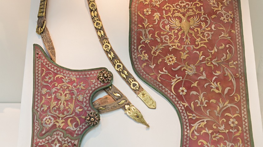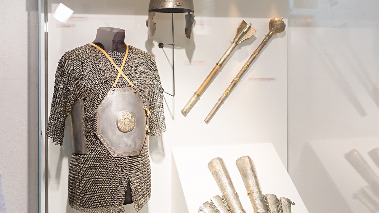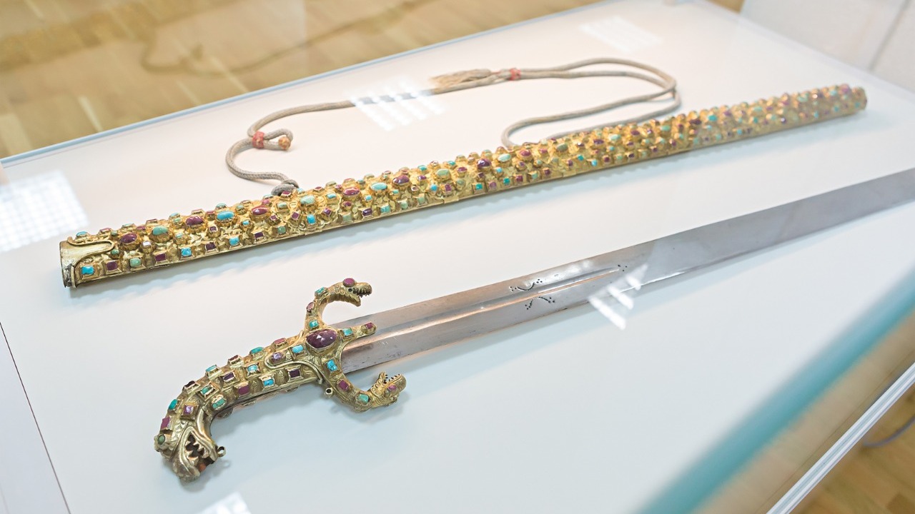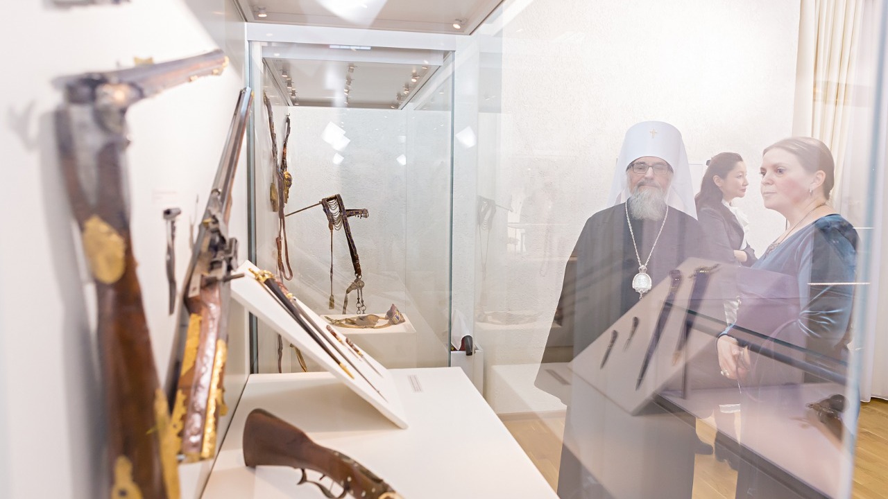 По словам представителя музеев Московского Кремля Ольги Сосниной, территориальный размах экспонатов – от Англии и Голландии на Западе до Цейлона на Востоке. Среди них, в частности, редчайший булатный клинок, поднесенный царю Алексею Михайловичу в 1675 году послом иранского шаха, и украшенный золотой насечкой шлем-шишак, изготовленный выдающимся кремлевским мастером Никитой Давыдовым для царя Михаила Романова. «Искусные украшения, тончайшие техники работы с металлами, использование редких материалов и драгоценных камней превращают оружие и доспехи в настоящие произведения искусства», – рассказала Ольга Соснина.