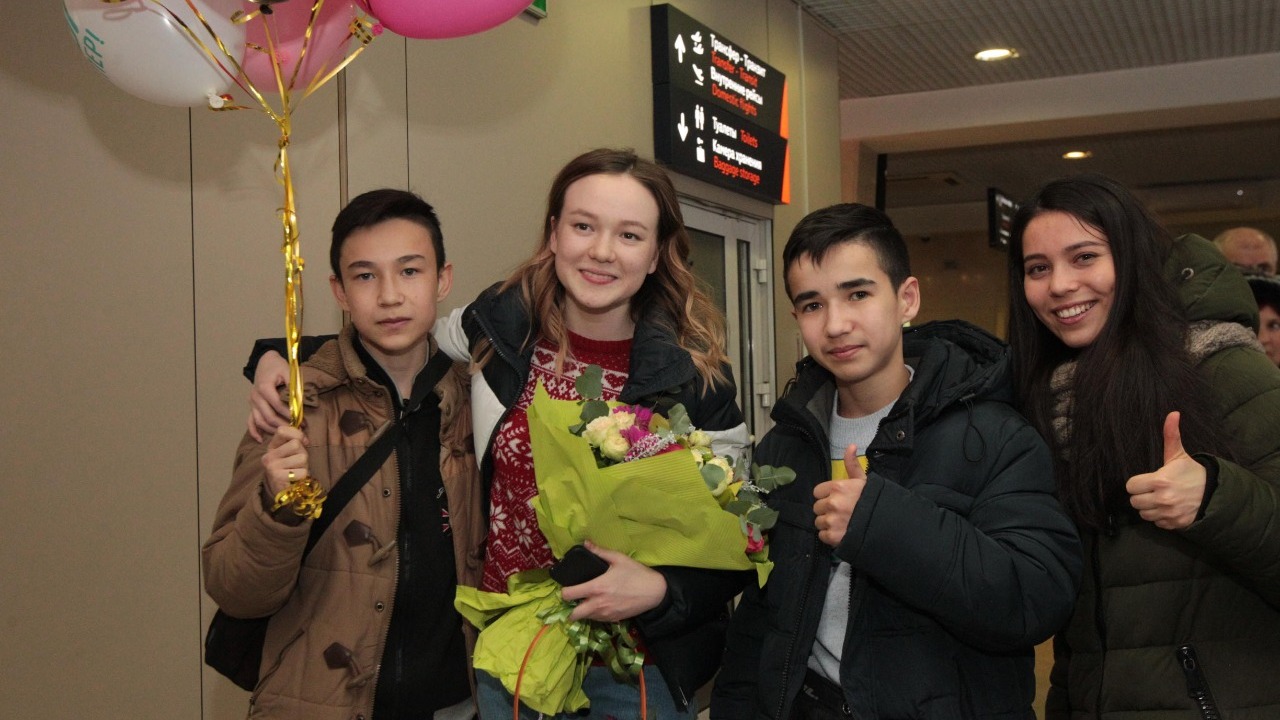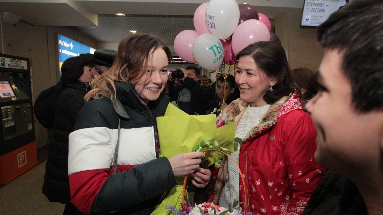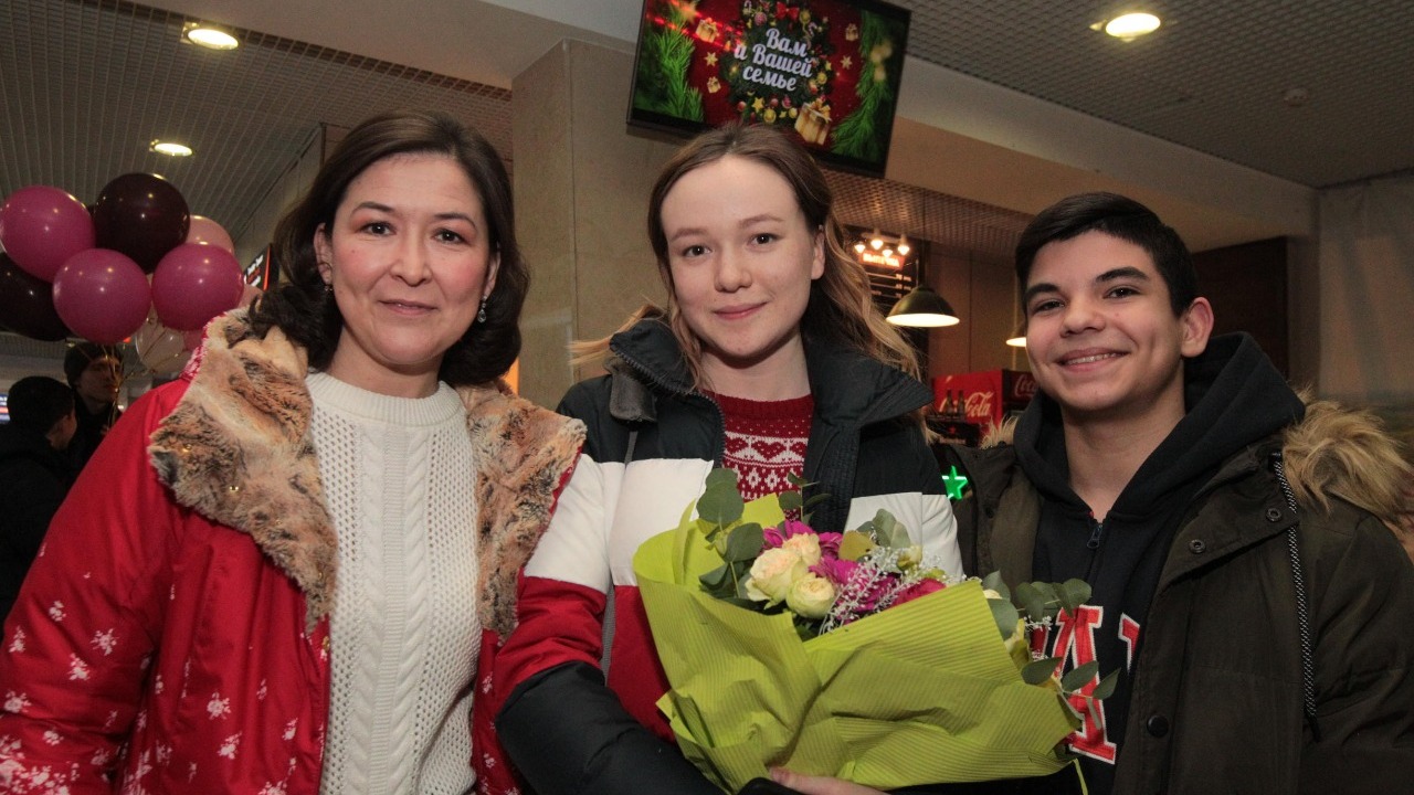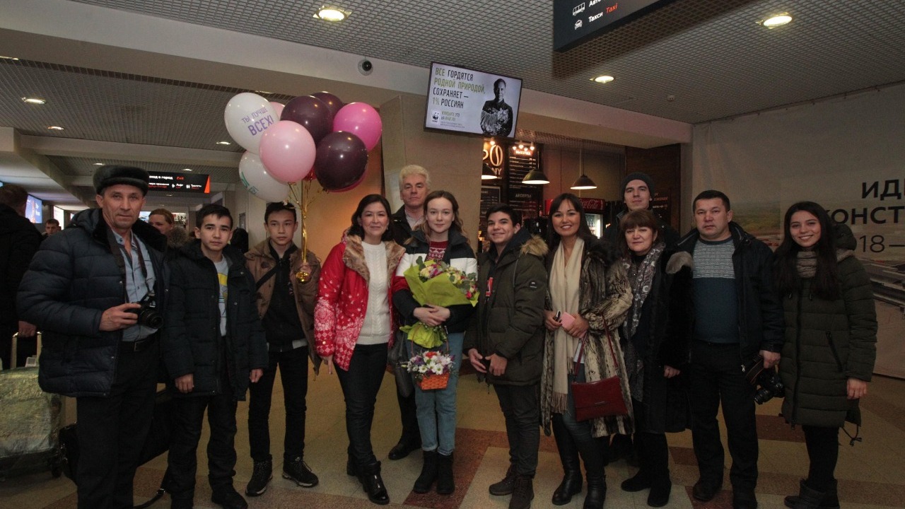 УФА, 3 янв 2019. /ИА «Башинформ», Лейла Аралбаева/.Финалистка седьмого сезона проекта Первого канала «Голос» Рушана Валиева прилетела в Уфу. Самолет из Москвы приземлился в половине четвертого утра с небольшим опозданием, и в аэропорту «Уфа» собралась толпа встречающих любимую певицу. Родные, друзья, фанаты, представители СМИ ждали Рушану с цветами, шарами, и юная артистка, несмотря на усталость, устремилась к ним с распростертыми объятиями.